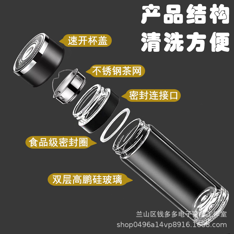 商品名称:速开杯茶水分离杯车载双层玻璃礼品水杯男士泡茶杯一键开盖玻璃杯