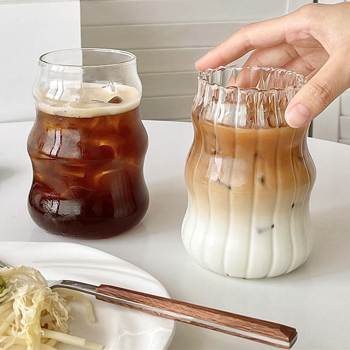 新款透明玻璃云朵杯ins风 家用牛奶早餐杯冰美式拿铁杯果汁冷饮