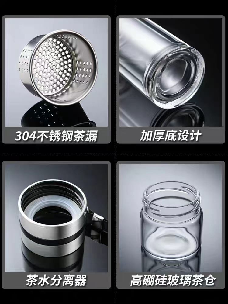 商品名称:大容量双层玻璃杯便携式茶水分离泡茶水杯男士泡茶杯耐热杯子