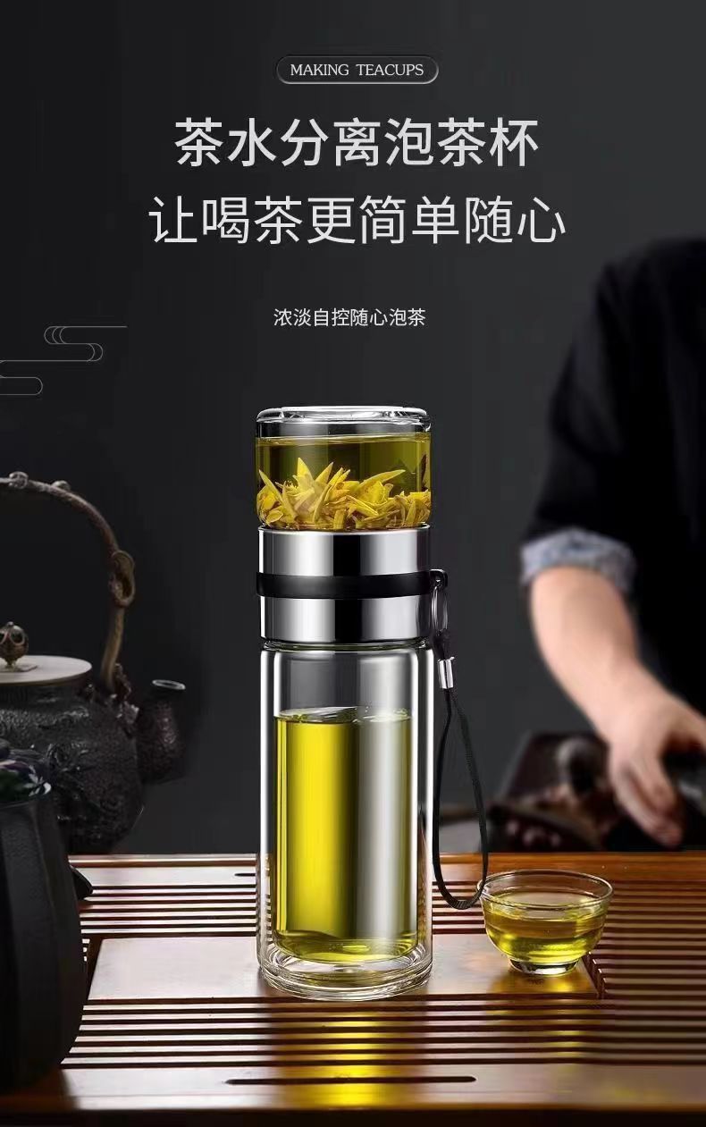 大容量双层玻璃杯便携式茶水分离泡茶水杯男士泡茶杯耐热杯子