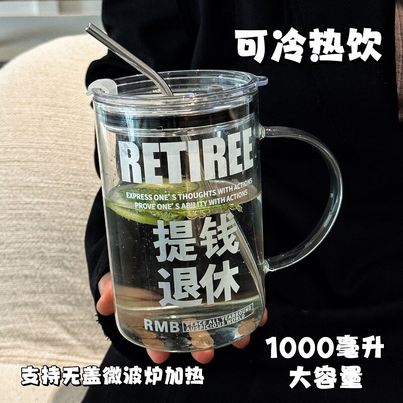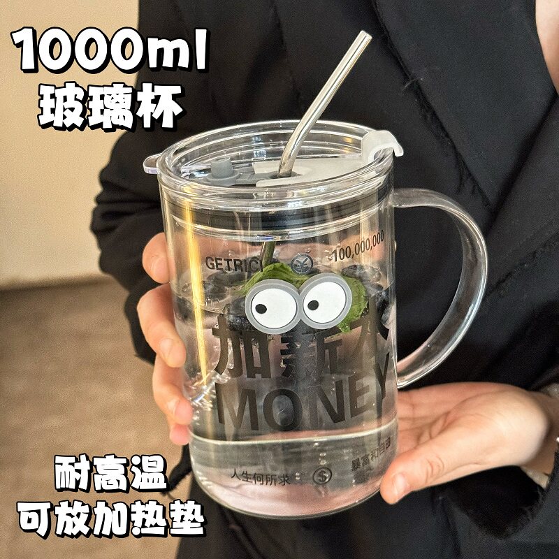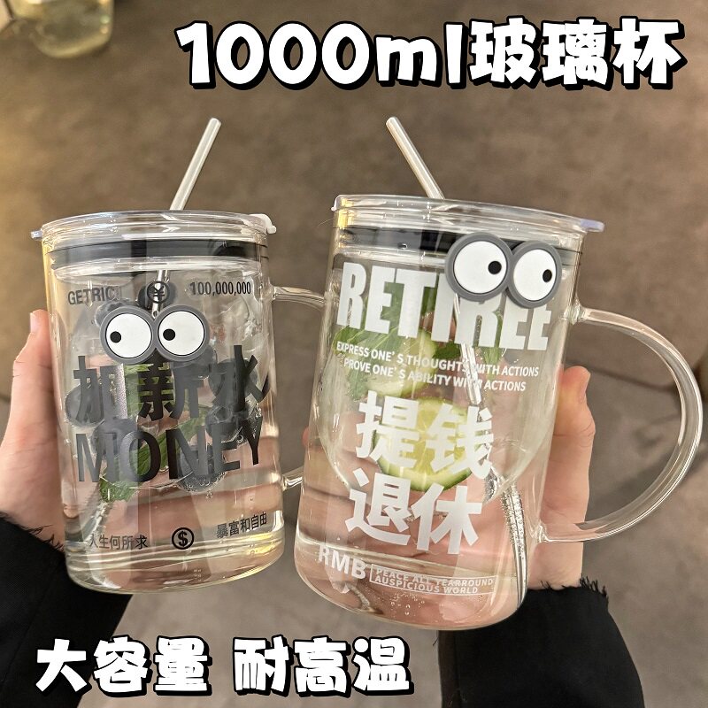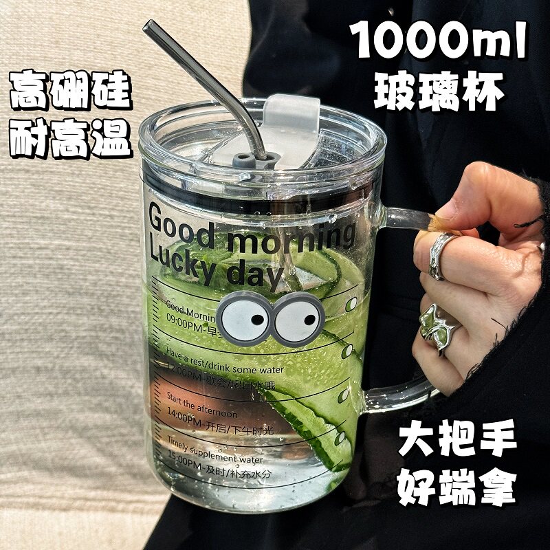 玻璃杯大容量1000ml高硼硅泡茶杯女办公室家用喝水杯子吸管杯新款