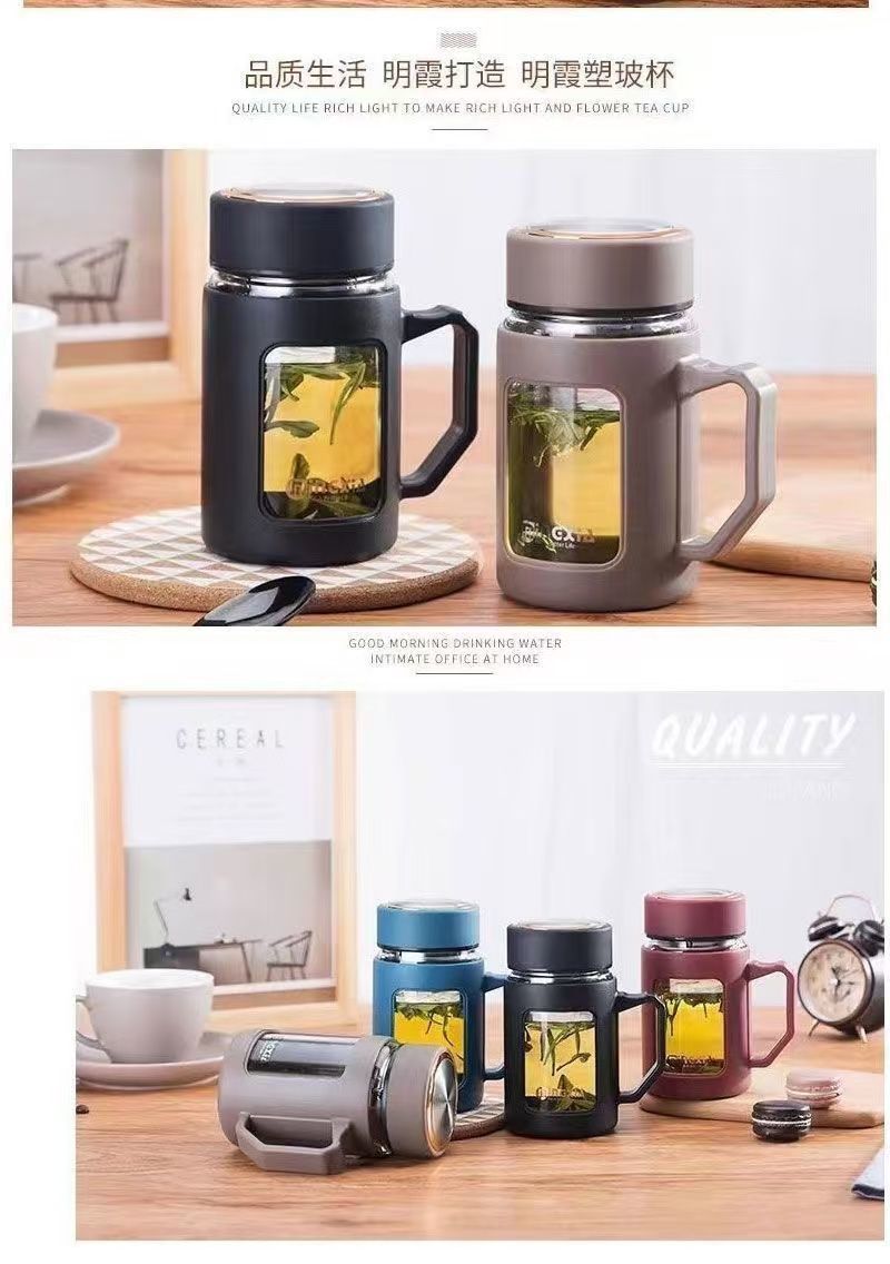 商品名称:玻璃杯带把手大容量带手柄办公室男女玻璃水杯子带盖家用商务水杯