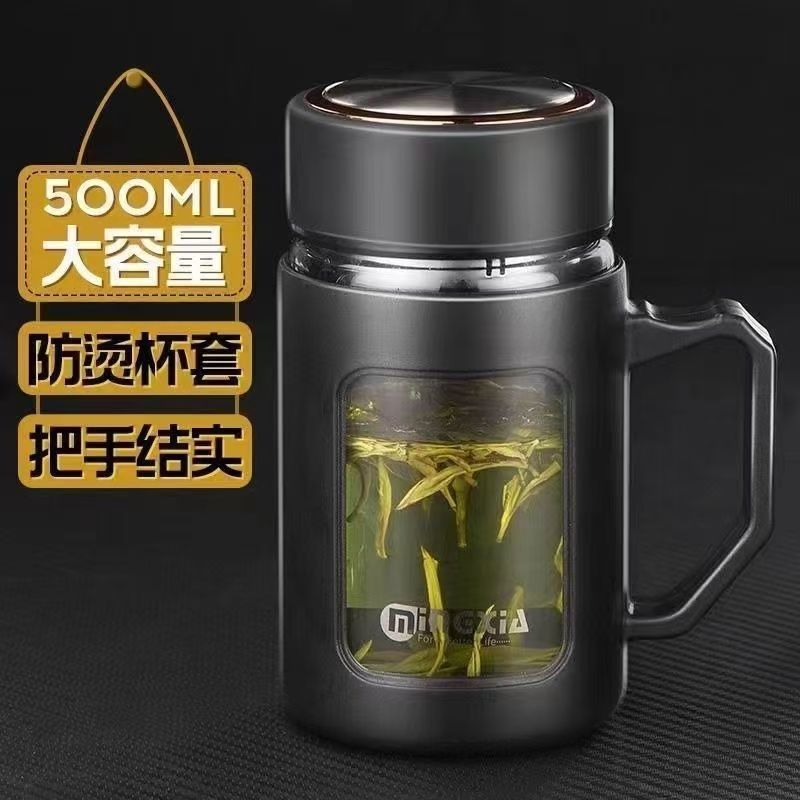 玻璃杯带把手大容量带手柄办公室男女玻璃水杯子带盖家用商务水杯