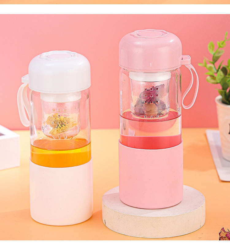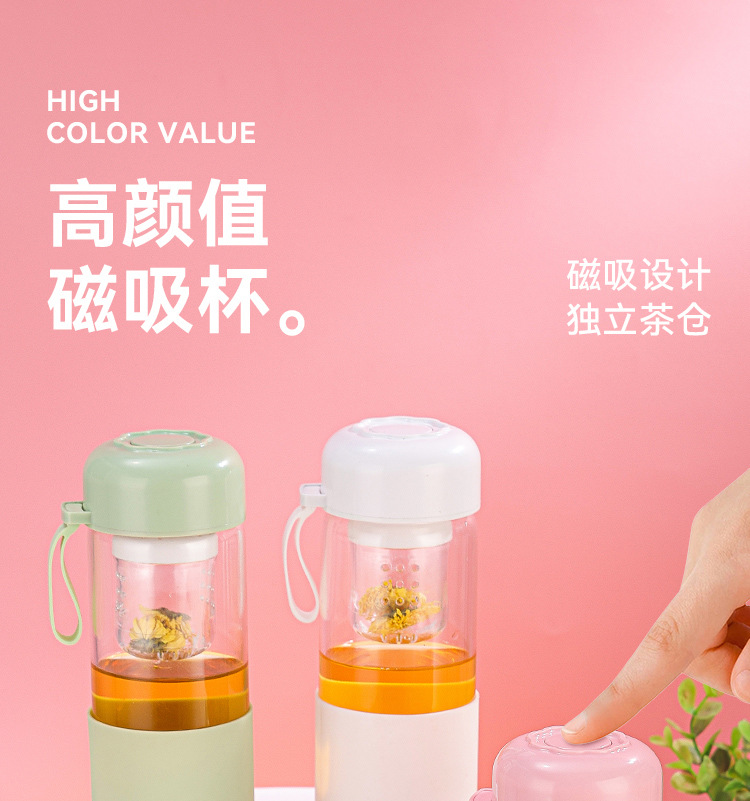 商品名称:高颜值女士磁吸杯办公室泡茶杯玻璃透明密封车载杯茶水分离杯