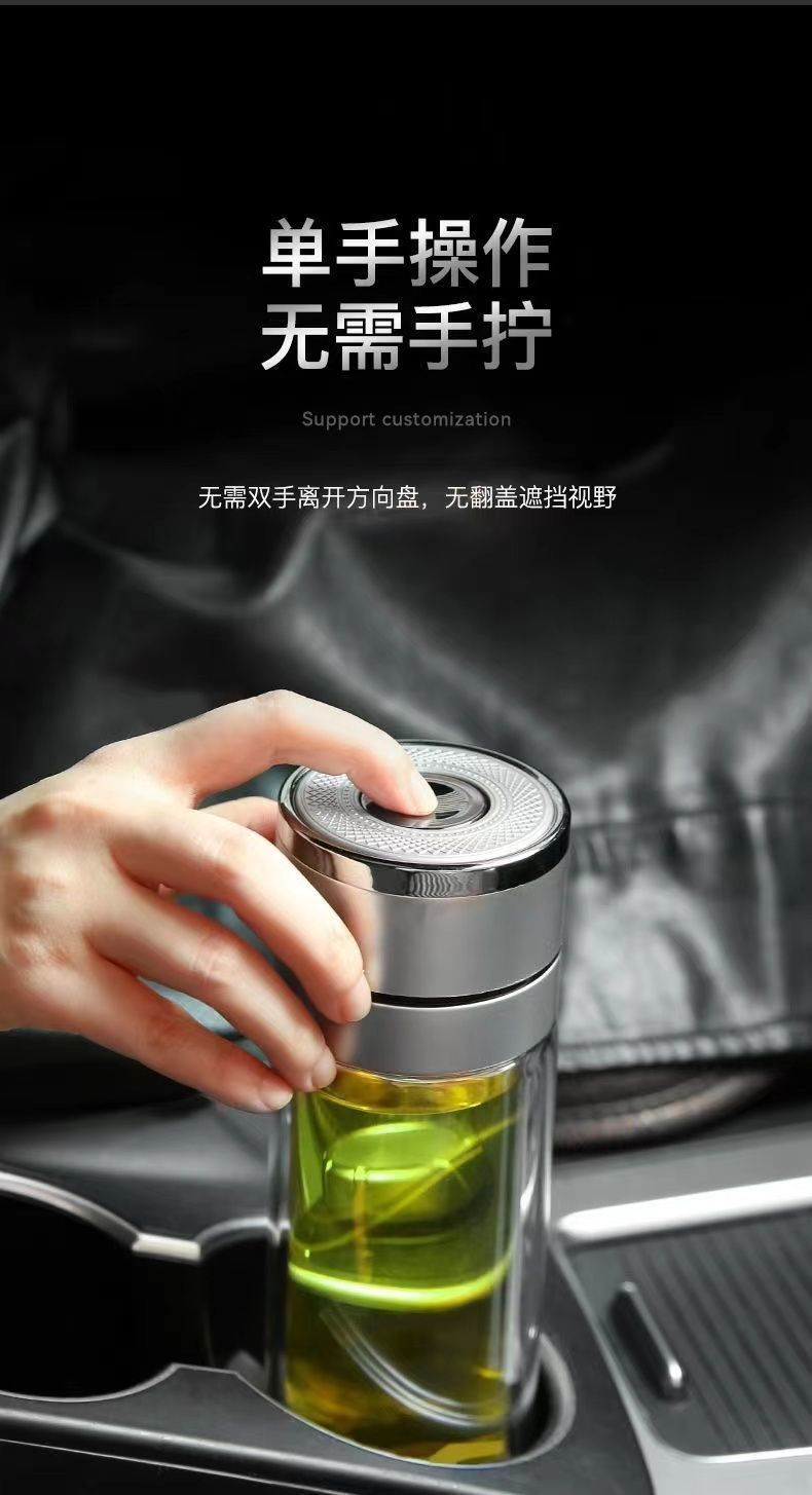 300ML至尊黑【沉着稳重】一键开盖/可车载/双层加厚/茶水分离