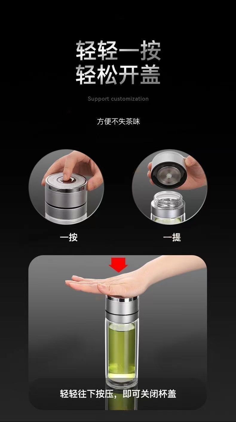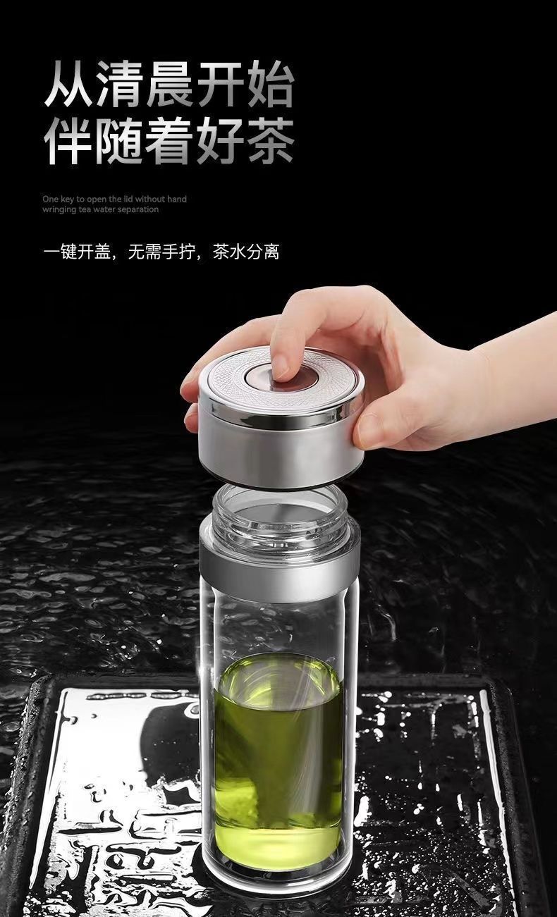 300ml银色【茶水分离】一键开盖/可车载/双层加厚/茶水分离