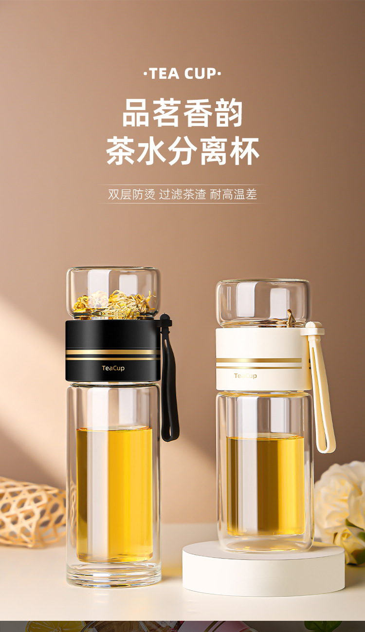 现货茶水分离杯子带滤网男女泡茶玻璃杯家用双层隔热玻璃水杯礼品