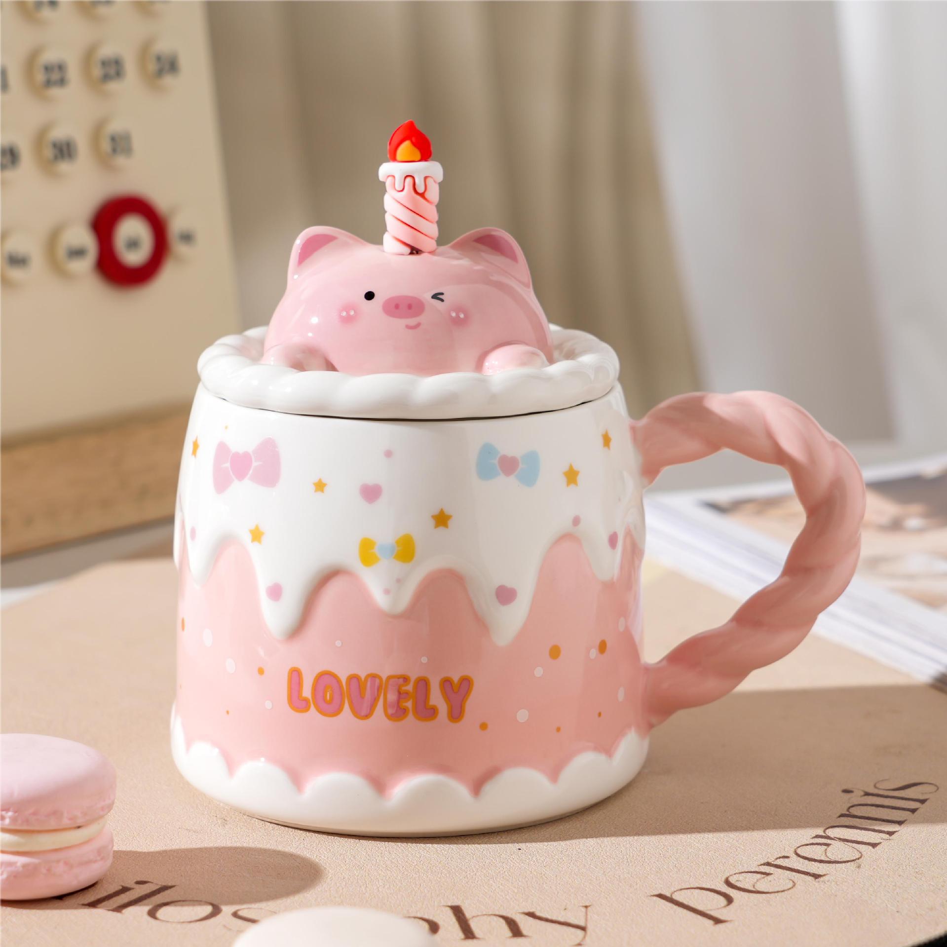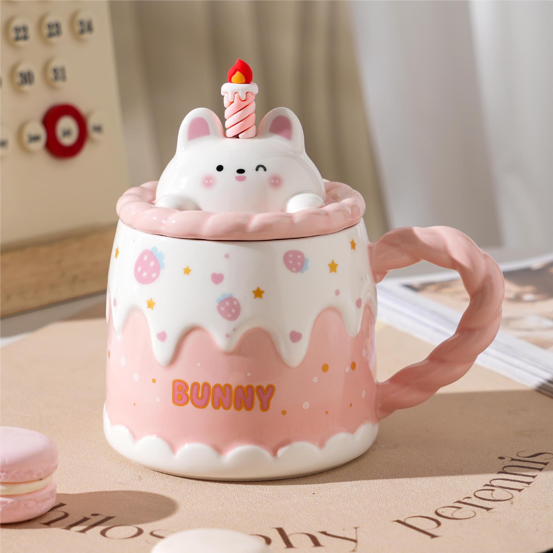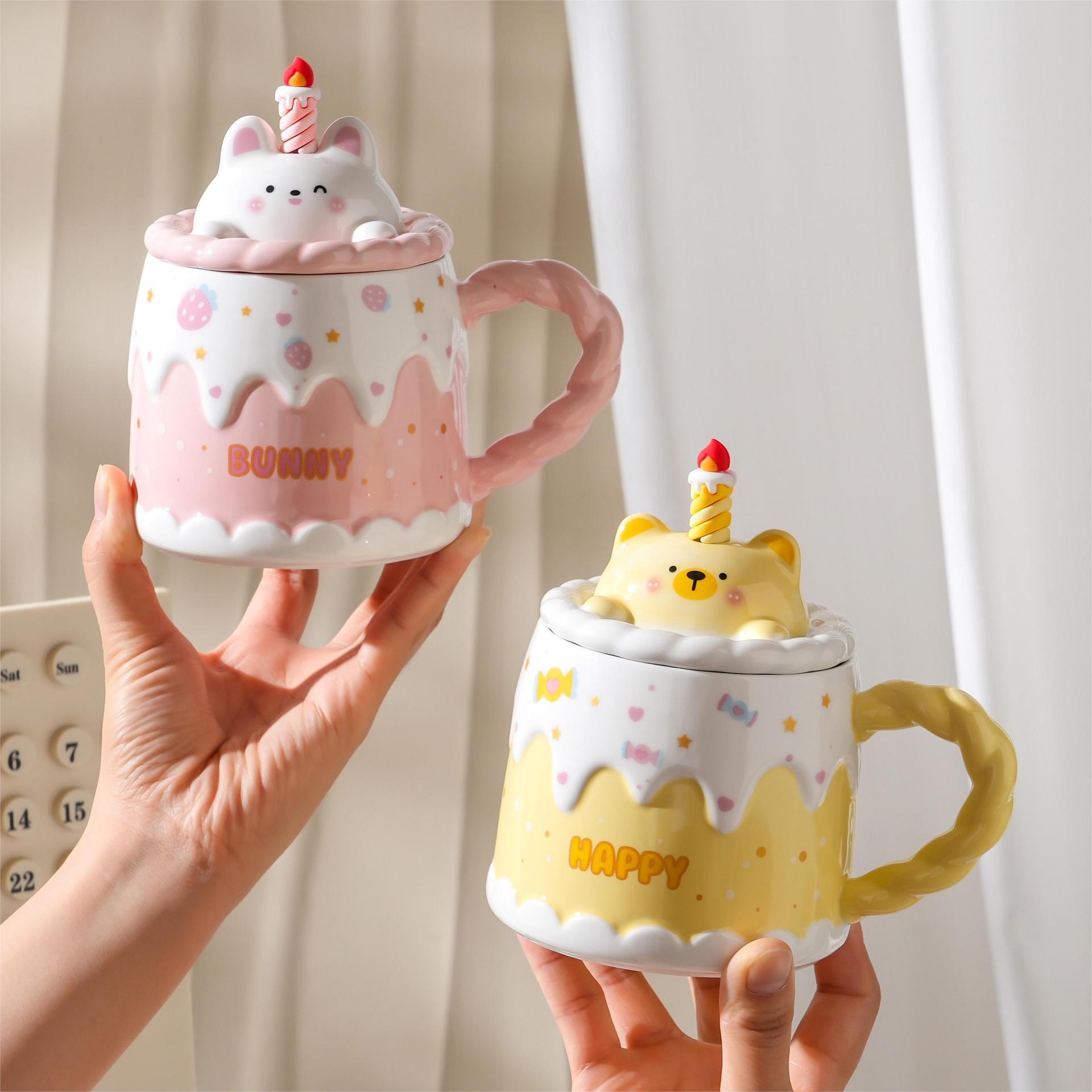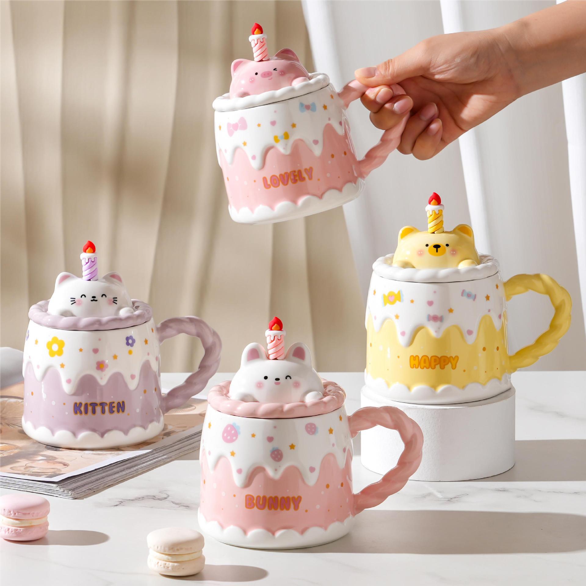 高颜值蛋糕马克杯女生卡通动物陶瓷杯带盖可爱办公室咖啡杯水杯子