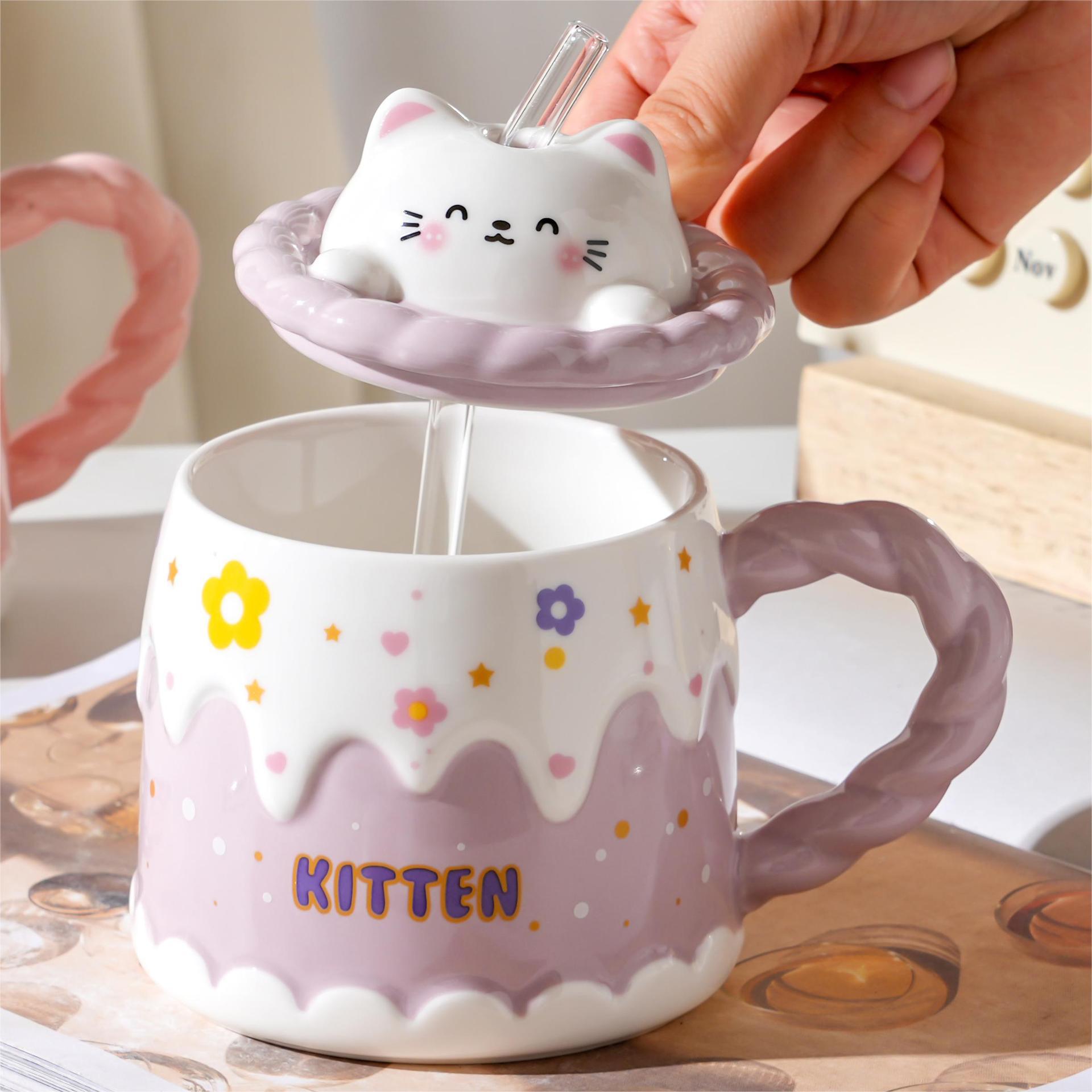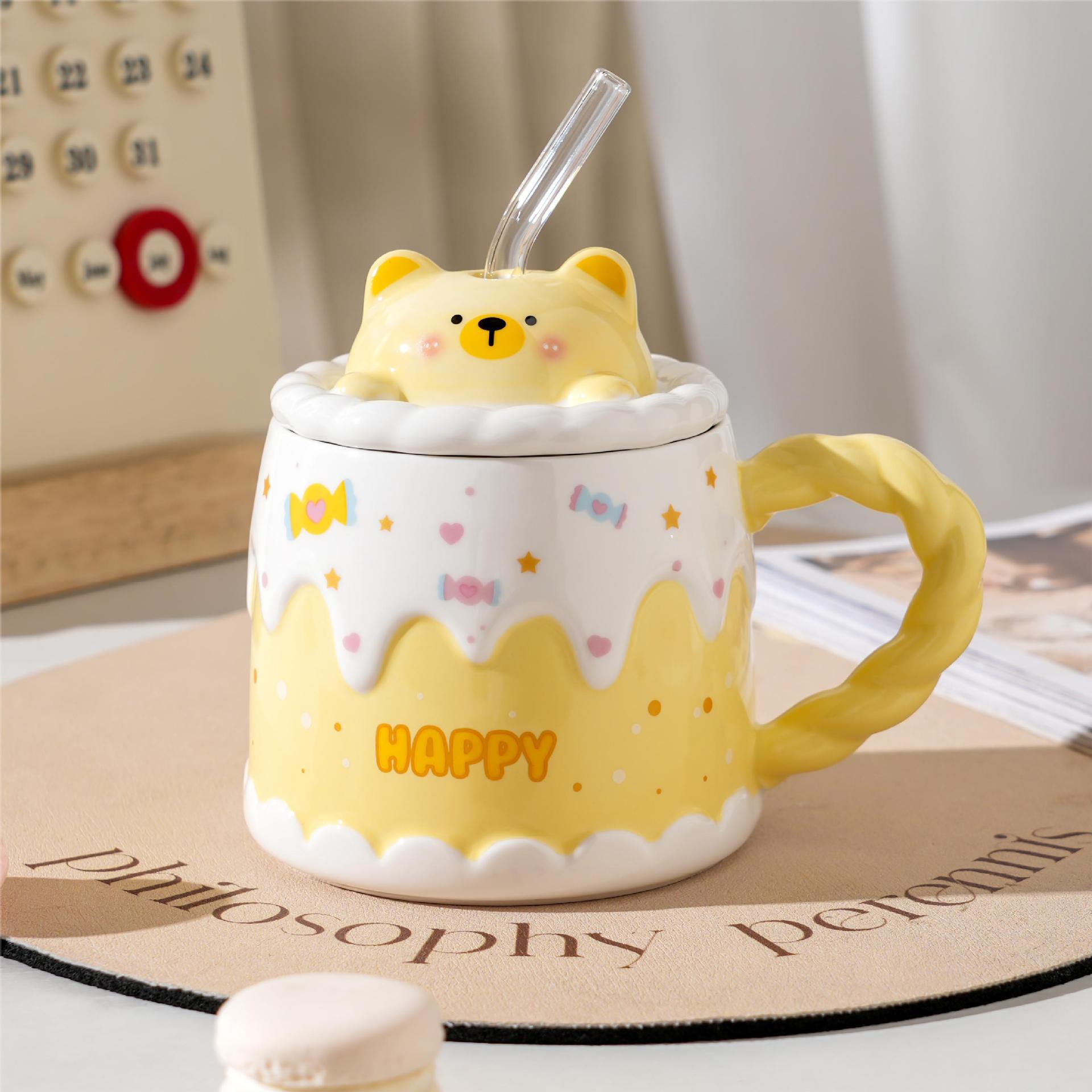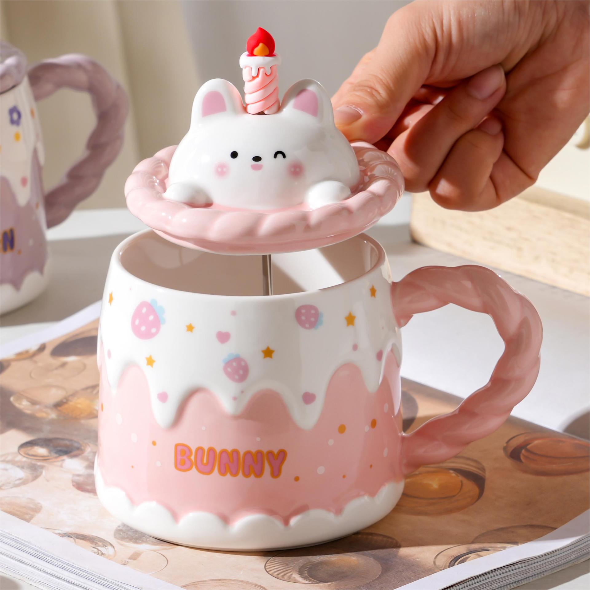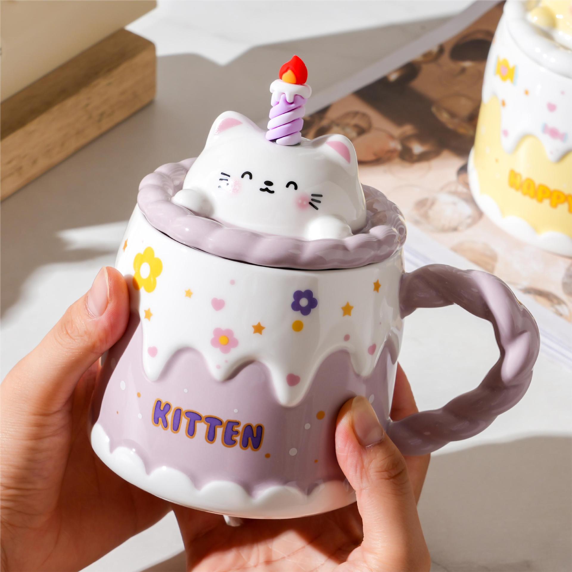 高颜值蛋糕马克杯女生卡通动物陶瓷杯带盖可爱办公室咖啡杯水杯子