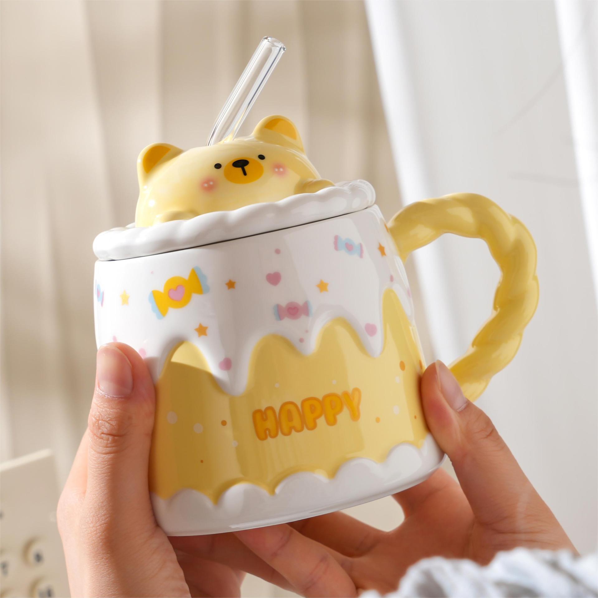 商品名称:高颜值蛋糕马克杯女生卡通动物陶瓷杯带盖可爱办公室咖啡杯水杯子