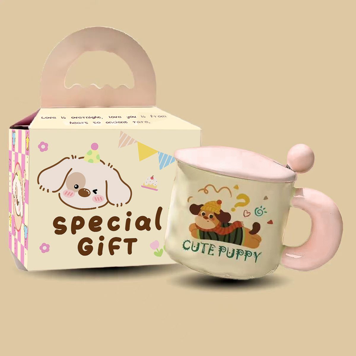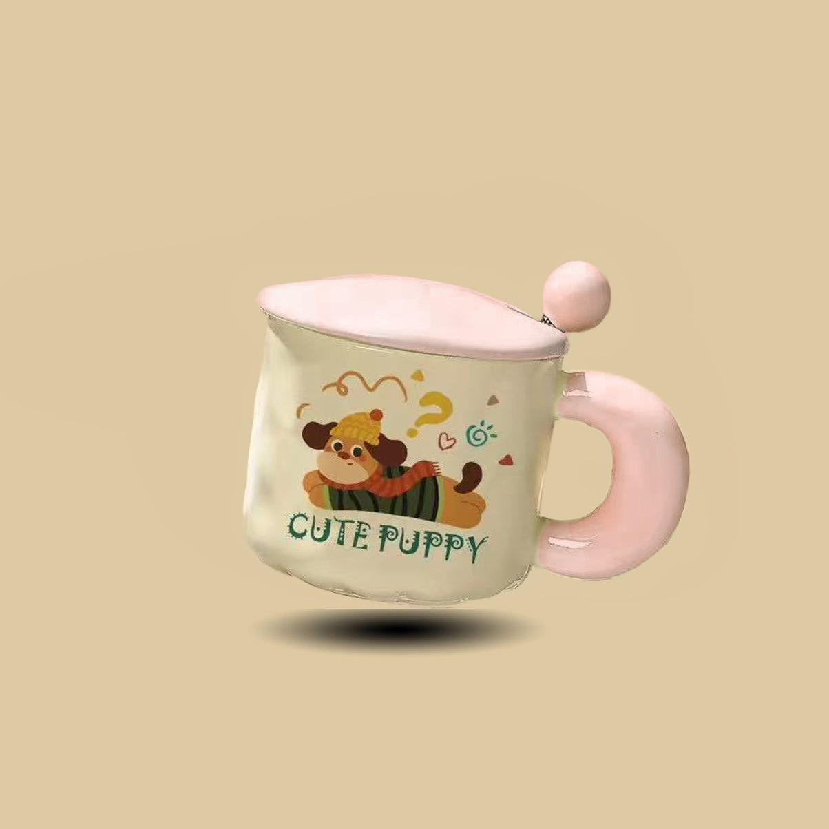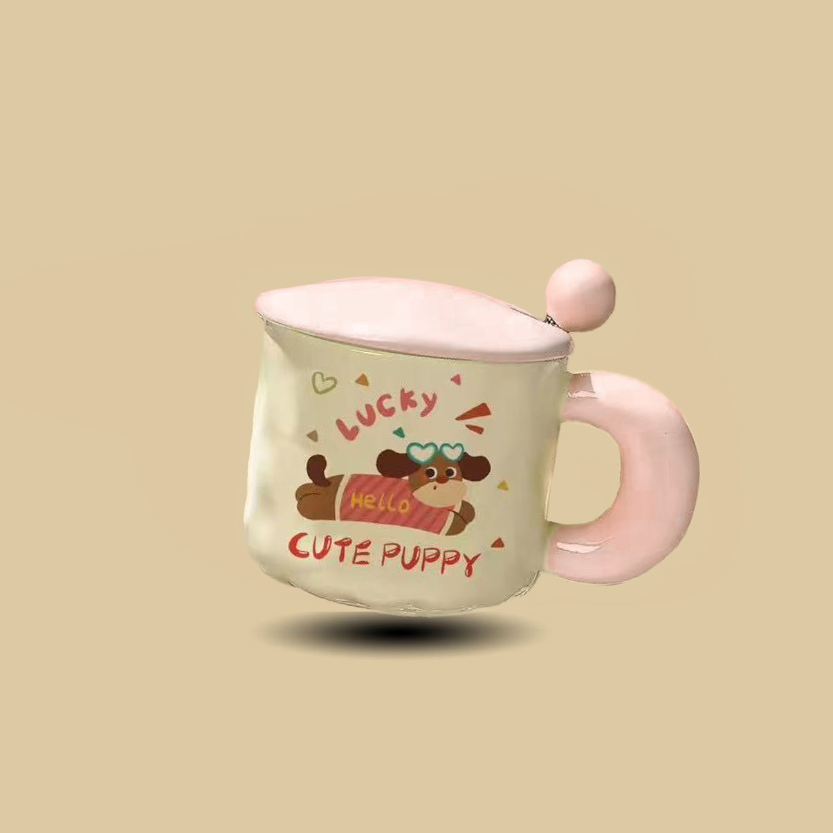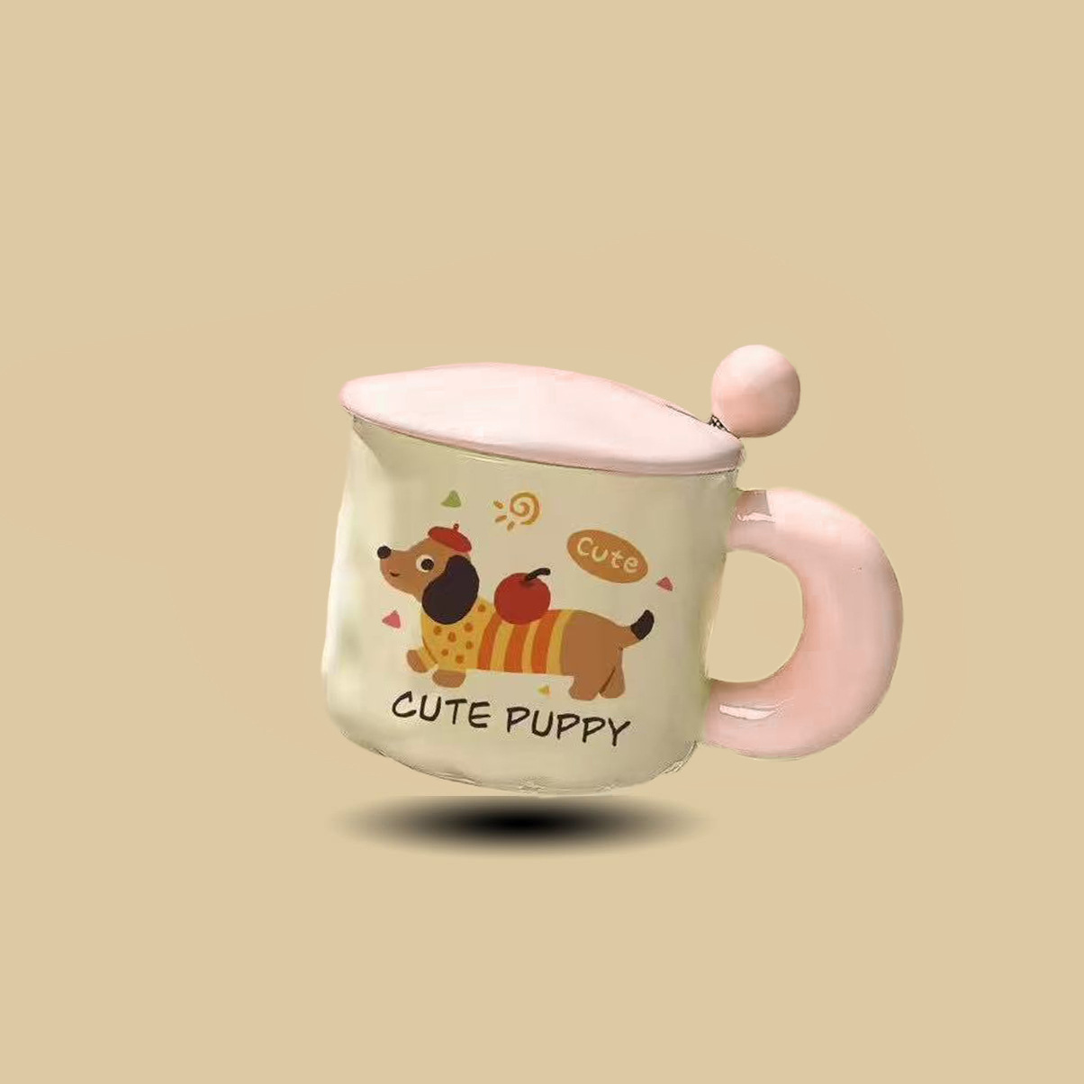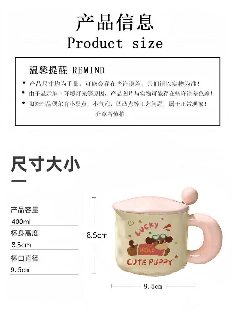 可爱卡通小狗陶瓷杯高颜值马克杯杯子带盖勺水杯生日礼物女生儿童