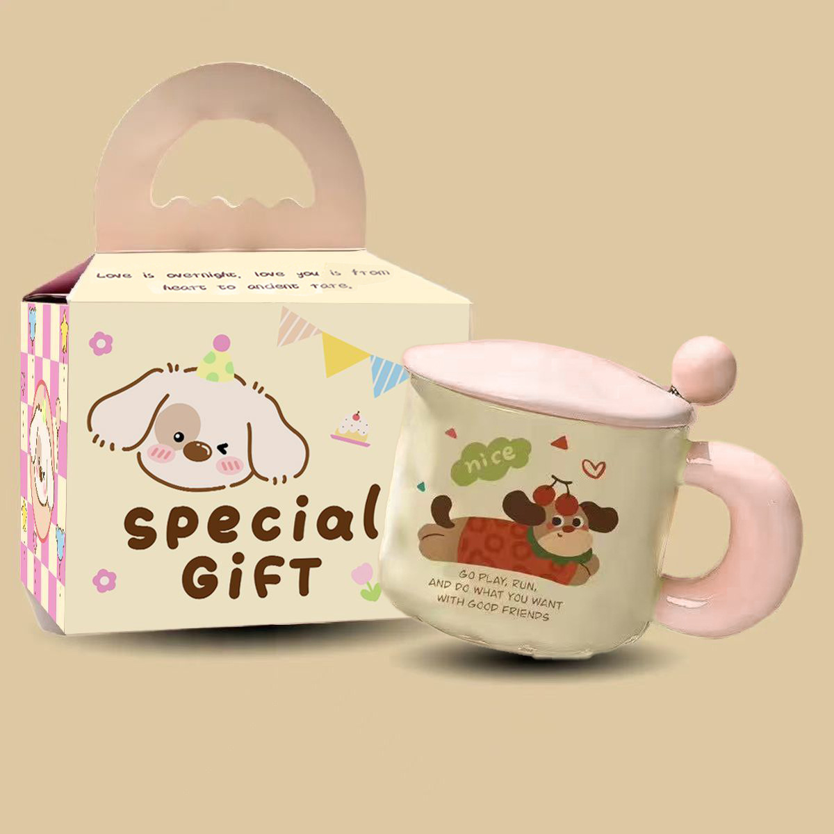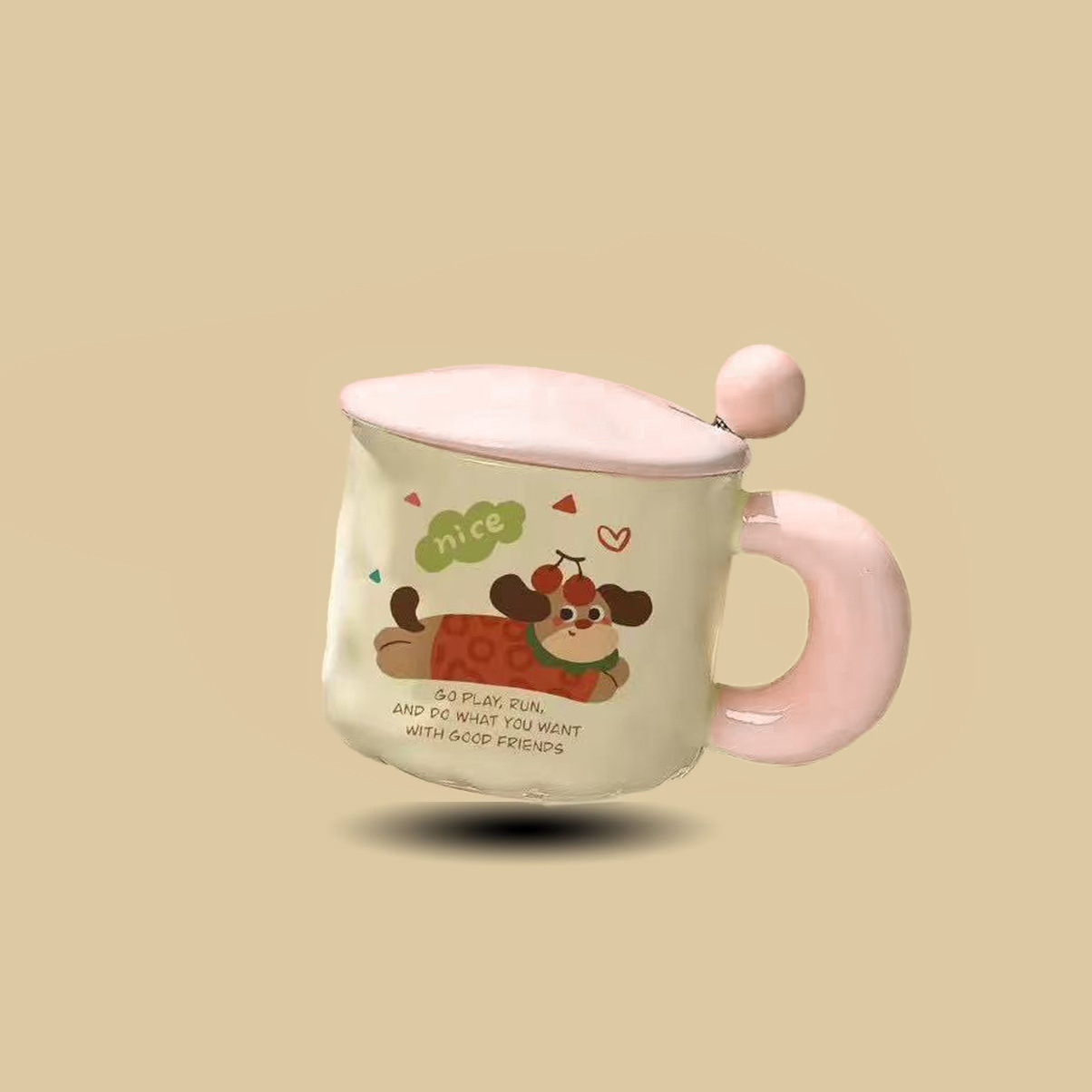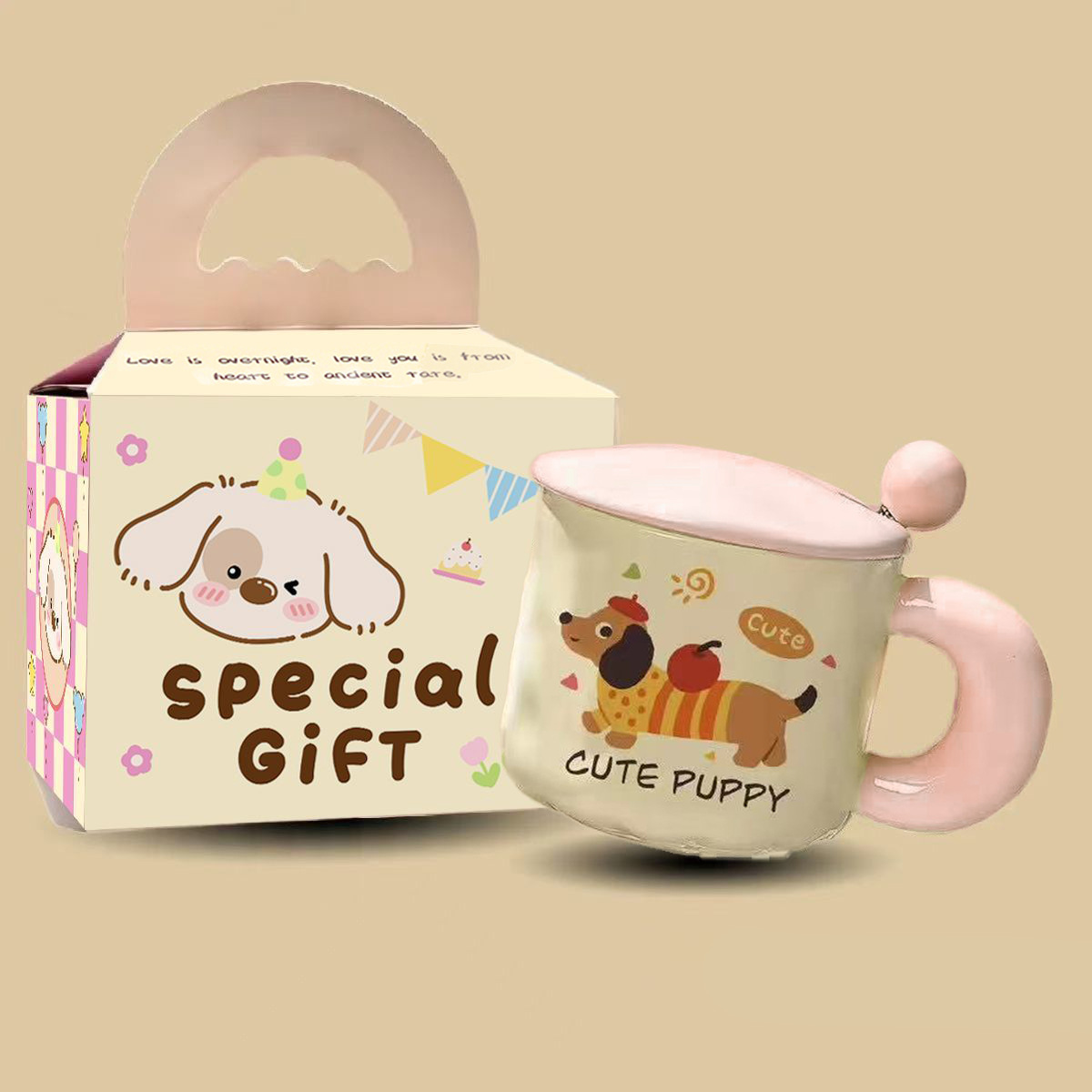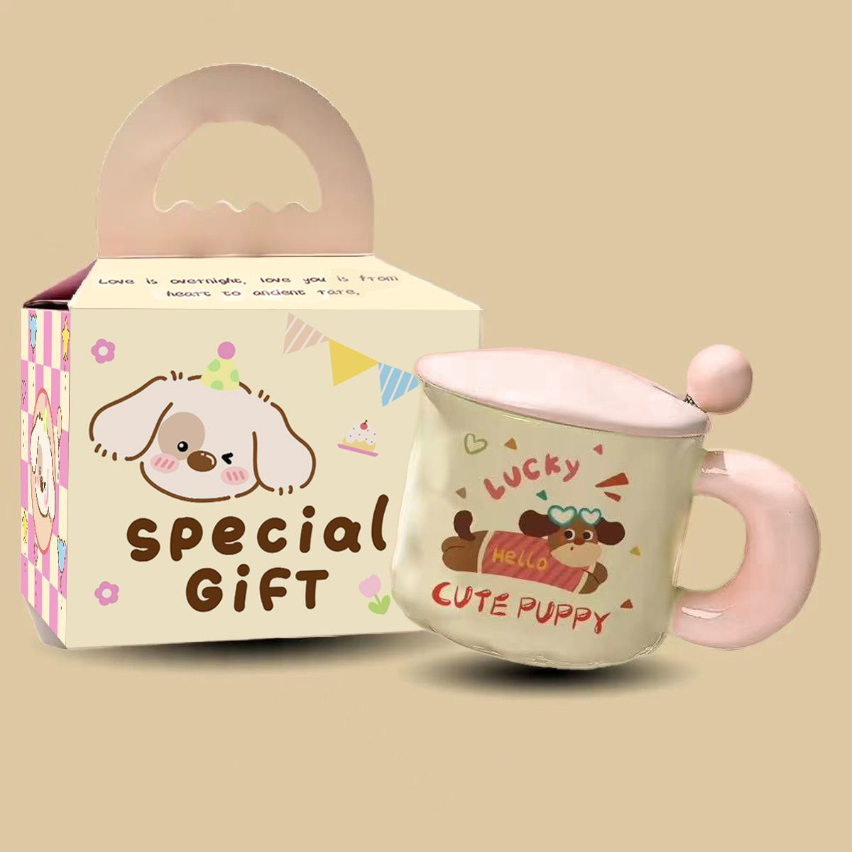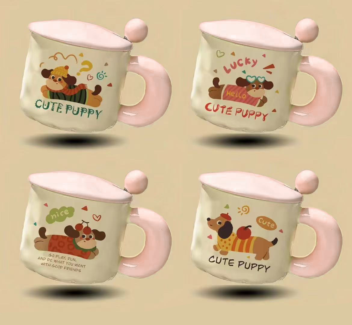 可爱卡通小狗陶瓷杯高颜值马克杯杯子带盖勺水杯生日礼物女生儿童