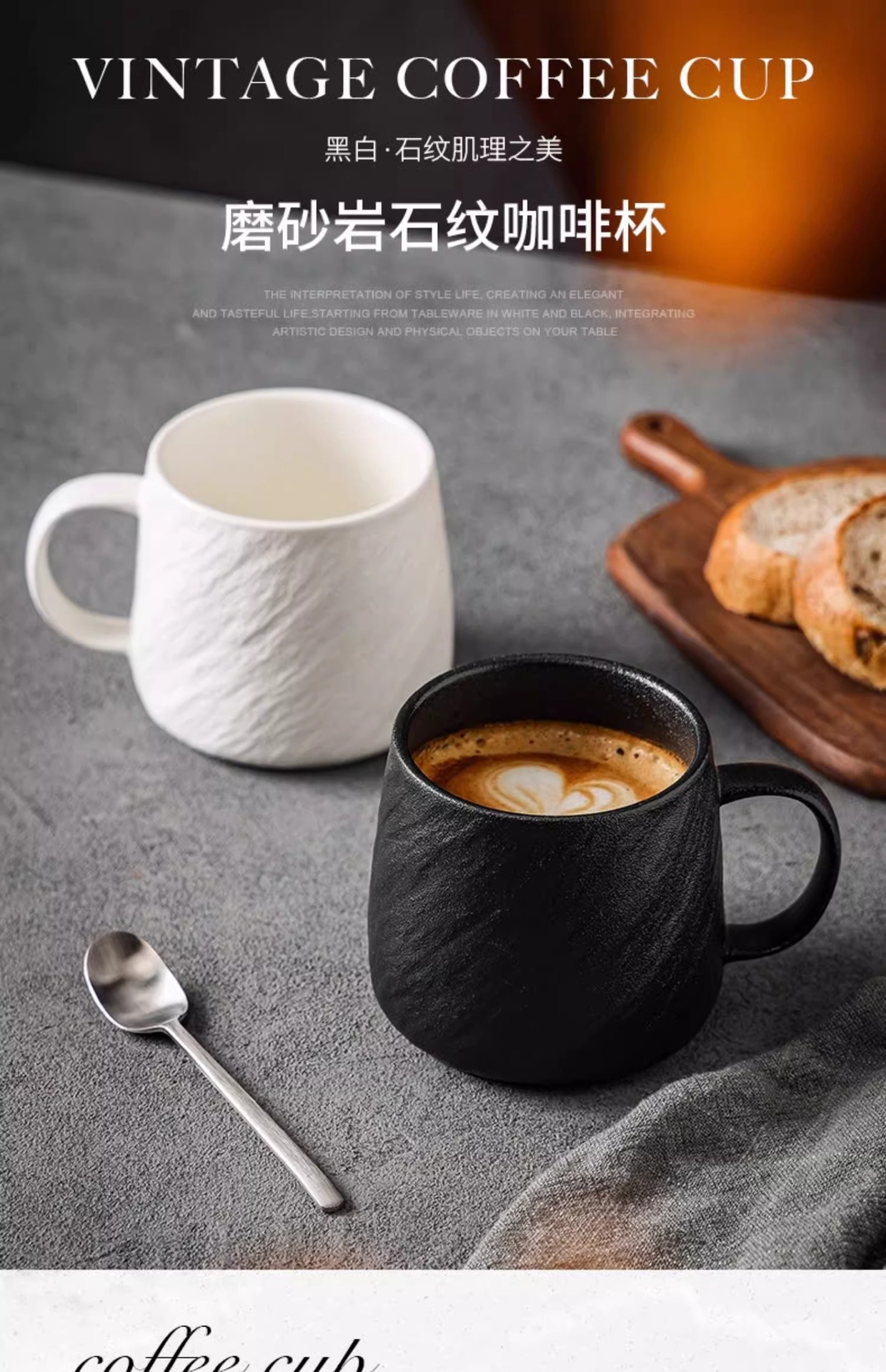 商品名称:简约岩石纹家用情侣杯陶瓷马克杯大容量喝水杯子小众男生水杯茶杯