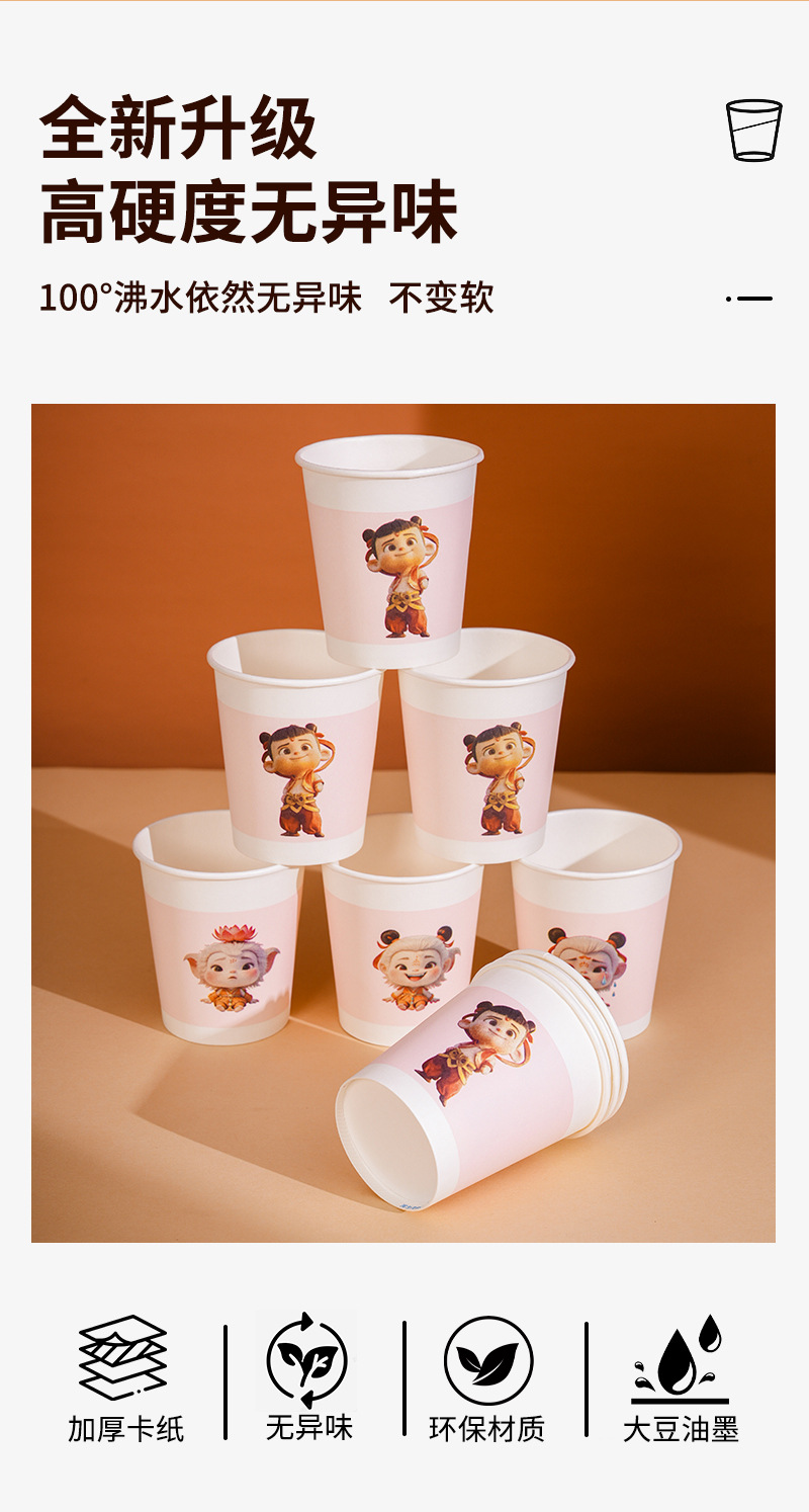 商品名称:哪吒卡通纸杯一次性水杯加厚家用热饮商用办公茶水杯厂家整箱