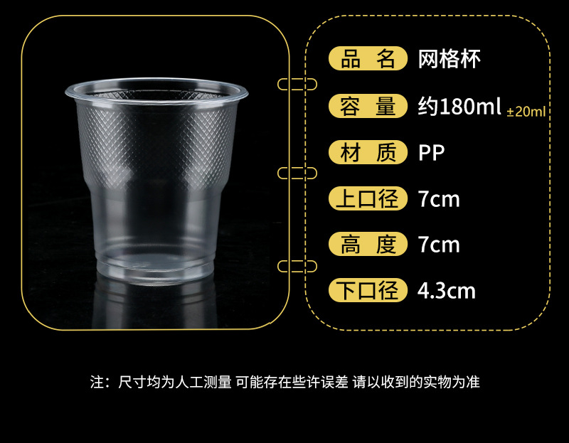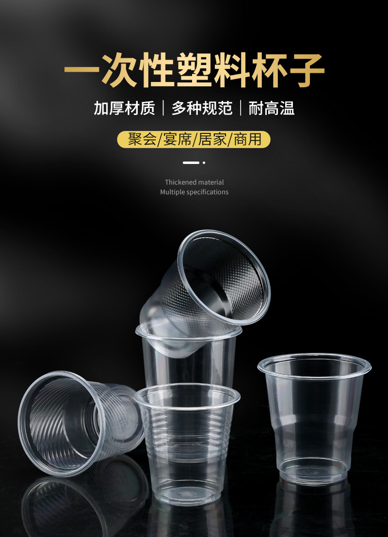 商品名称:一次性杯子塑料杯加厚透明水杯家用餐用航空杯饮料杯商用一件起批