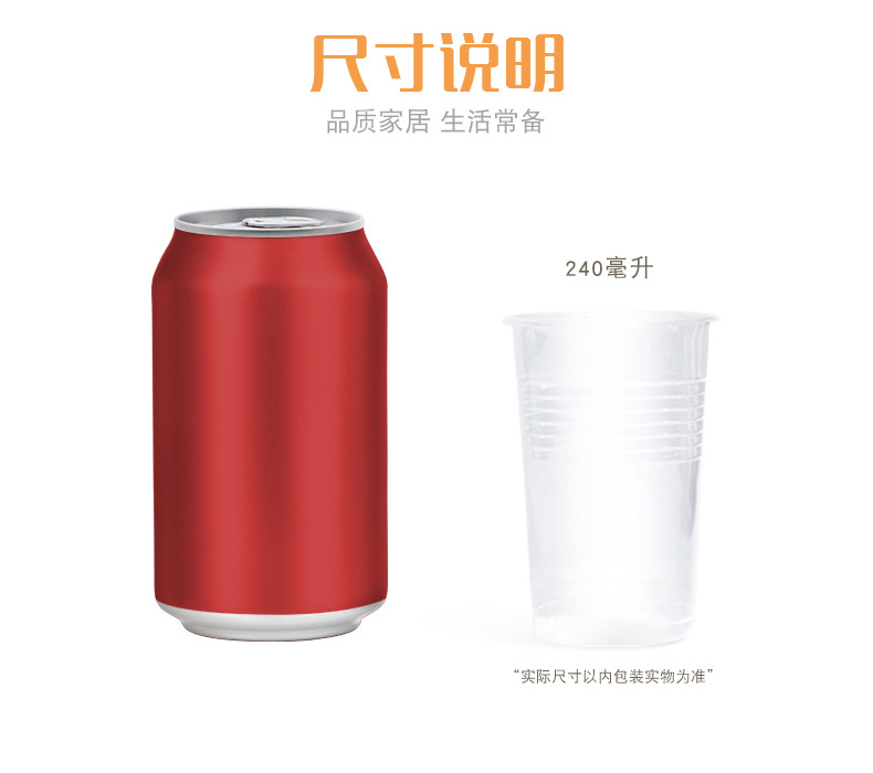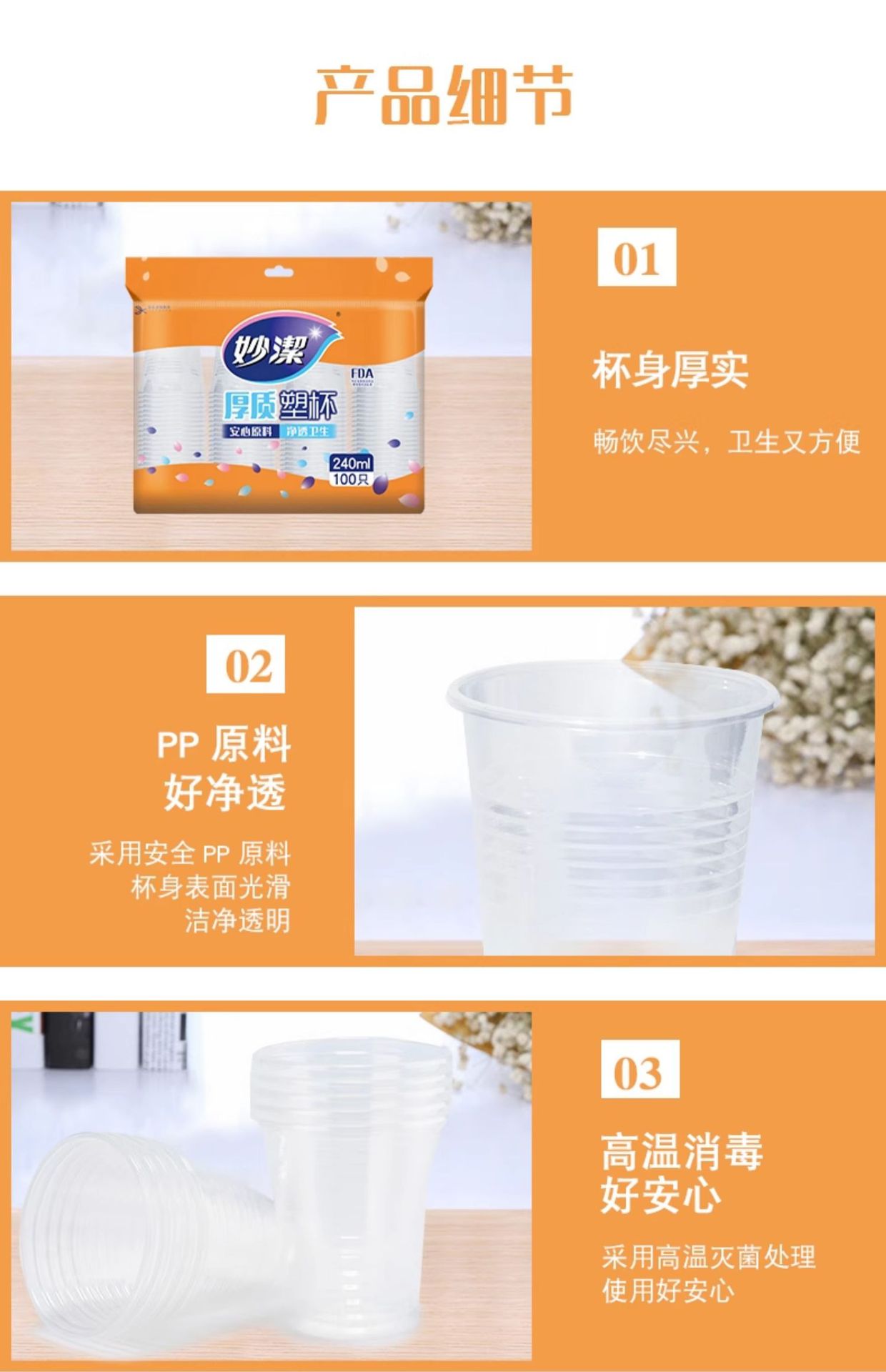 商品名称:妙洁一次性杯子加厚塑料航空杯家用喝水办公室泡茶水杯露营饮料杯