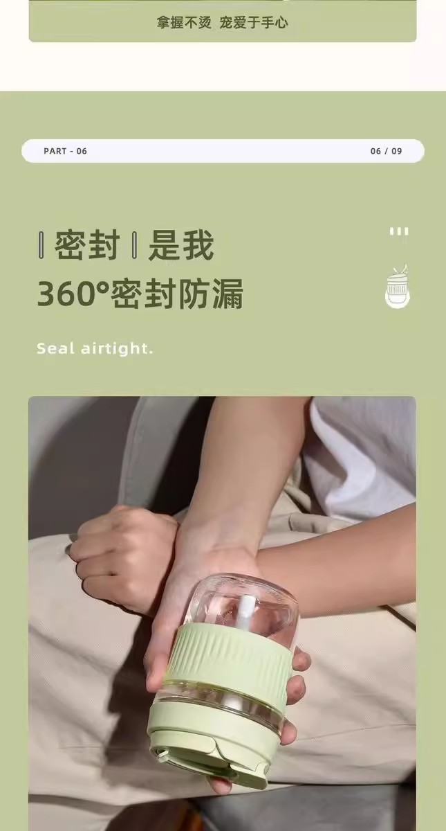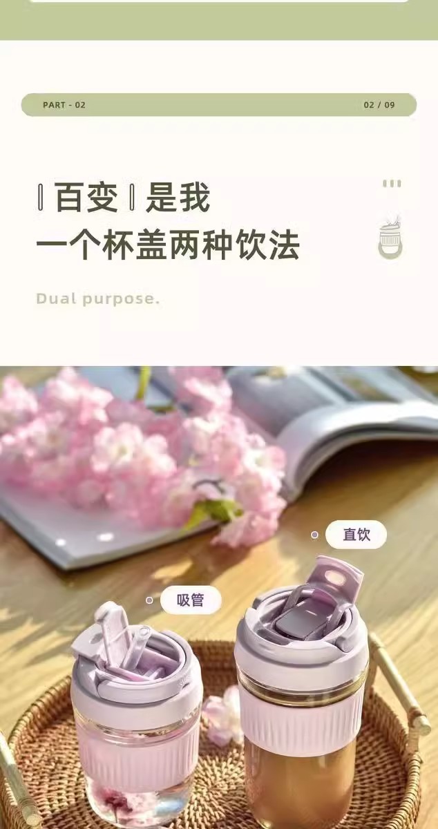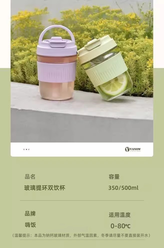便携玻璃水杯带吸管耐高温随行杯女生高颜值办公室咖啡牛奶杯新款