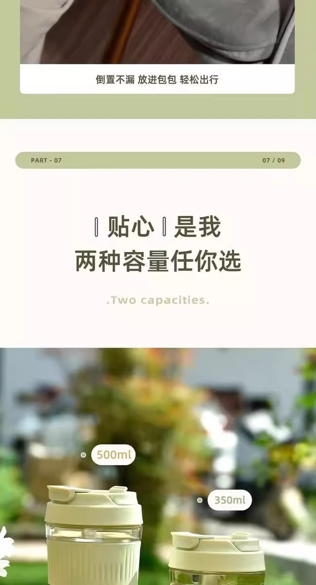 商品名称:便携玻璃水杯带吸管耐高温随行杯女生高颜值办公室咖啡牛奶杯新款