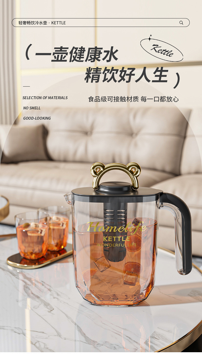 冷水壶+ 4水杯 | AS+PP | 21*8.6*22 | 454g | 550g (装盒重量) | 牛皮纸盒装 | 36套 | 59*46.5*70.5 |