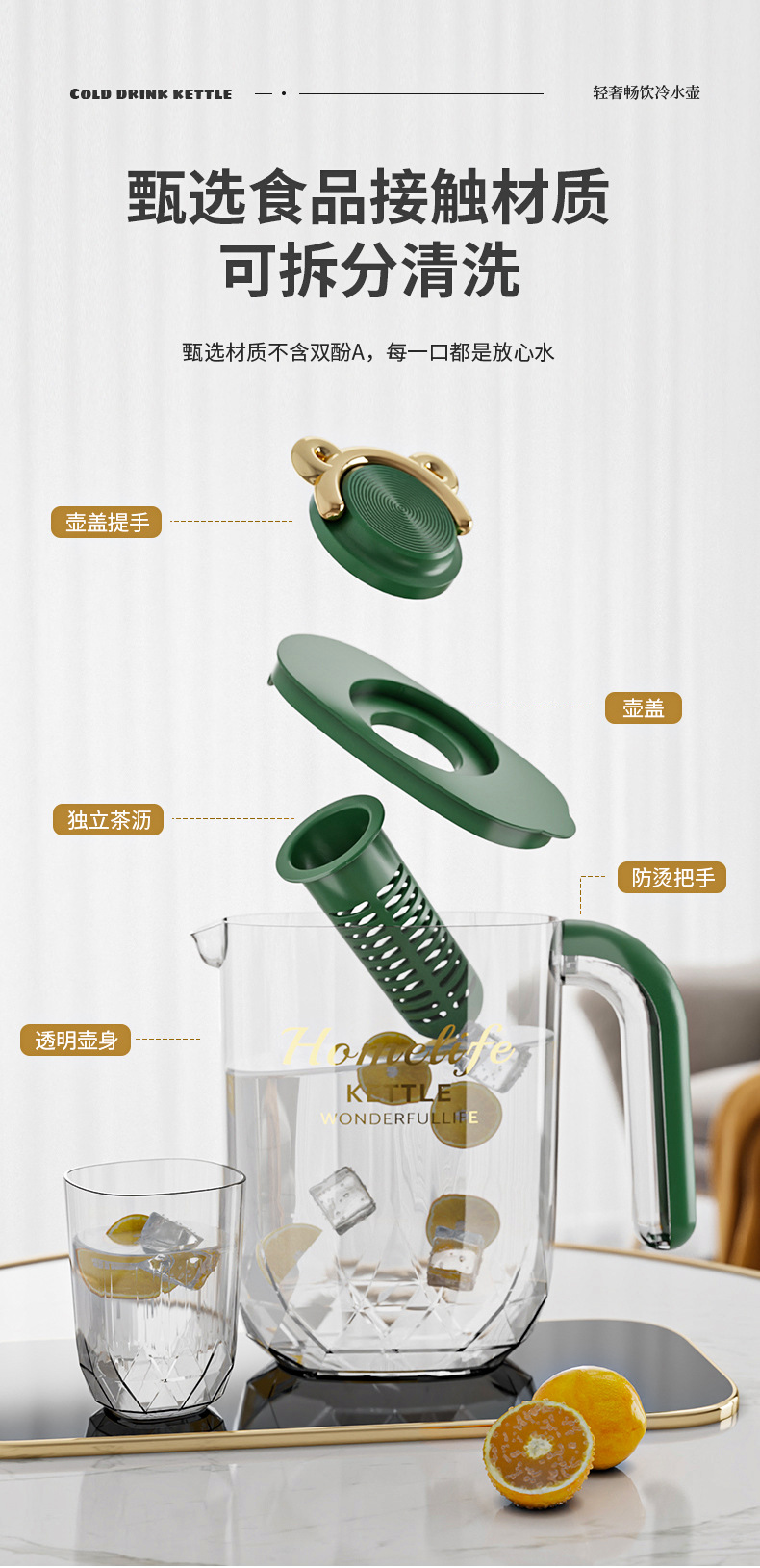 备注:壶身和杯子是AS材质,其他部位为PP材质