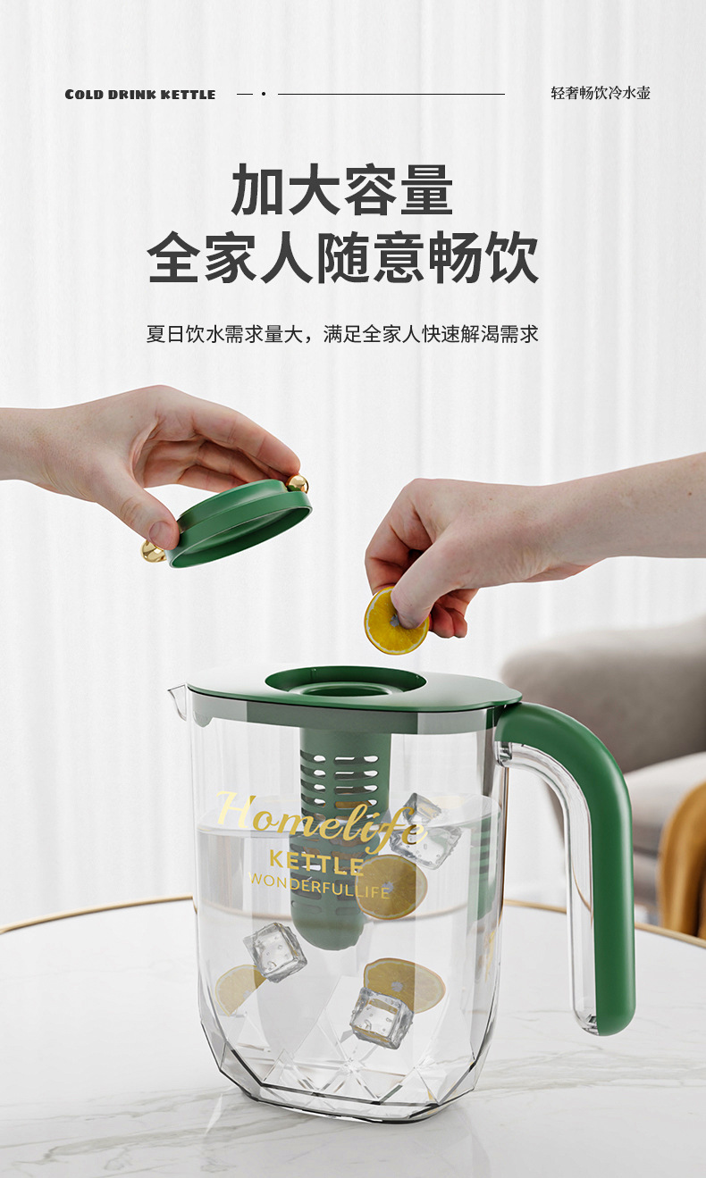 水壶容量大约2L左右,每个纸盒包装,水杯装在壶身里