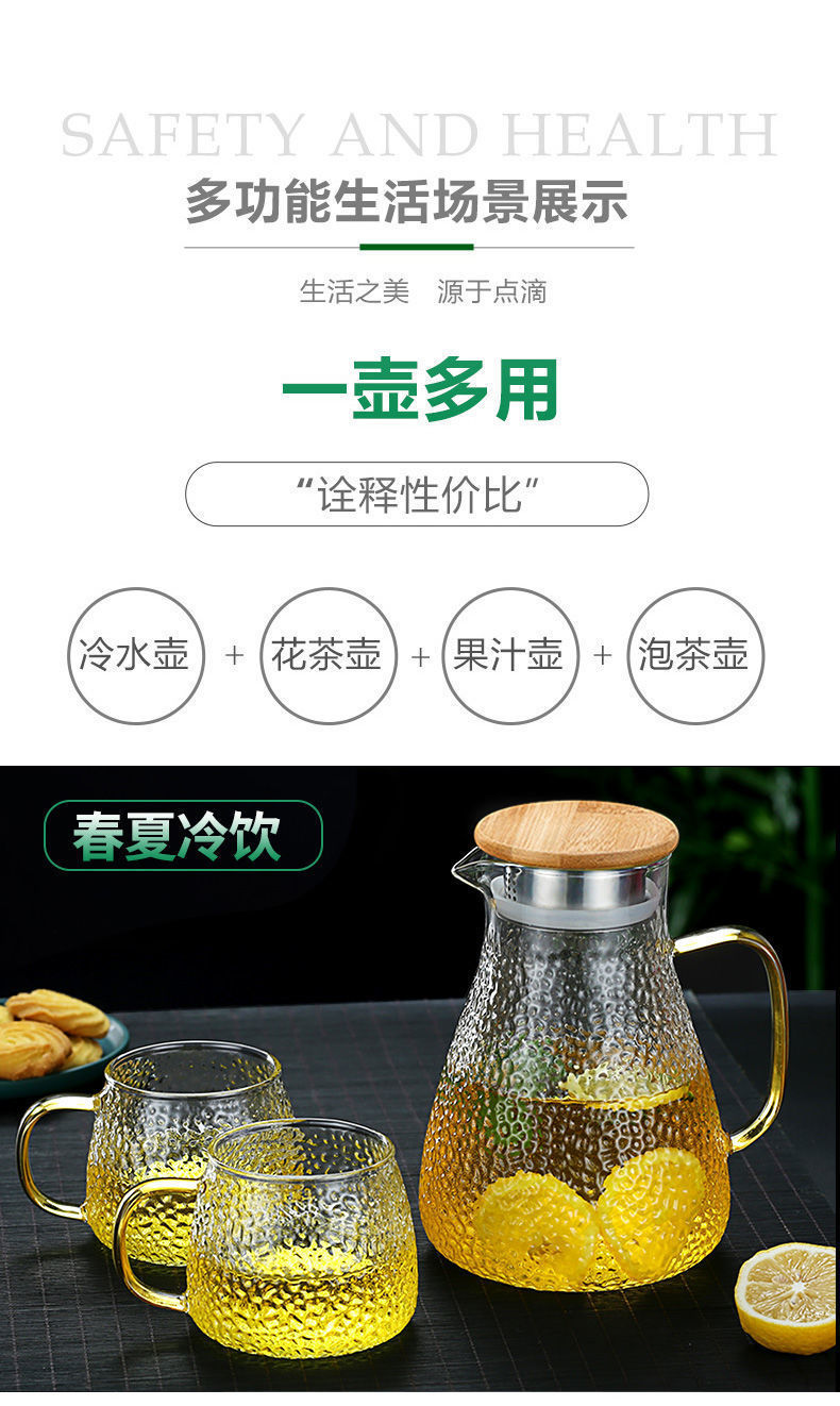 商品名称:高颜值耐热玻璃凉水壶防爆大容量果汁壶冷水壶水杯家用客厅冷泡壶