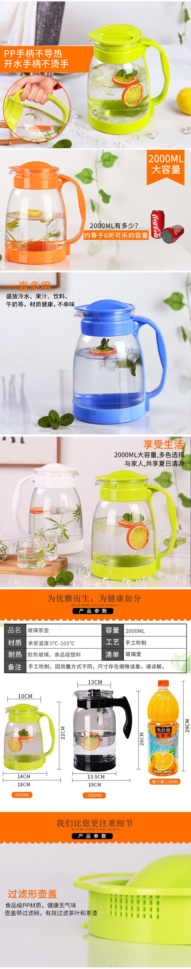 商品名称:家用大容量玻璃冷水壶耐高温泡茶壶防爆装开水杯子果汁凉水壶套装