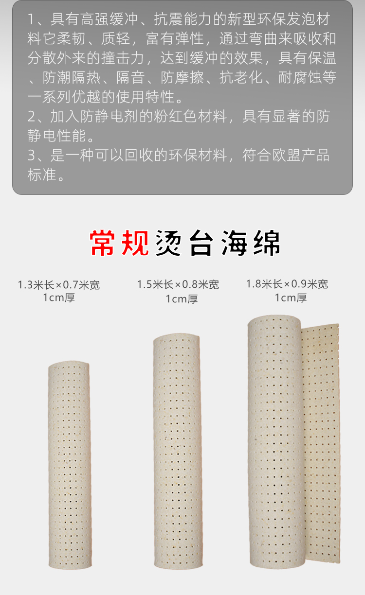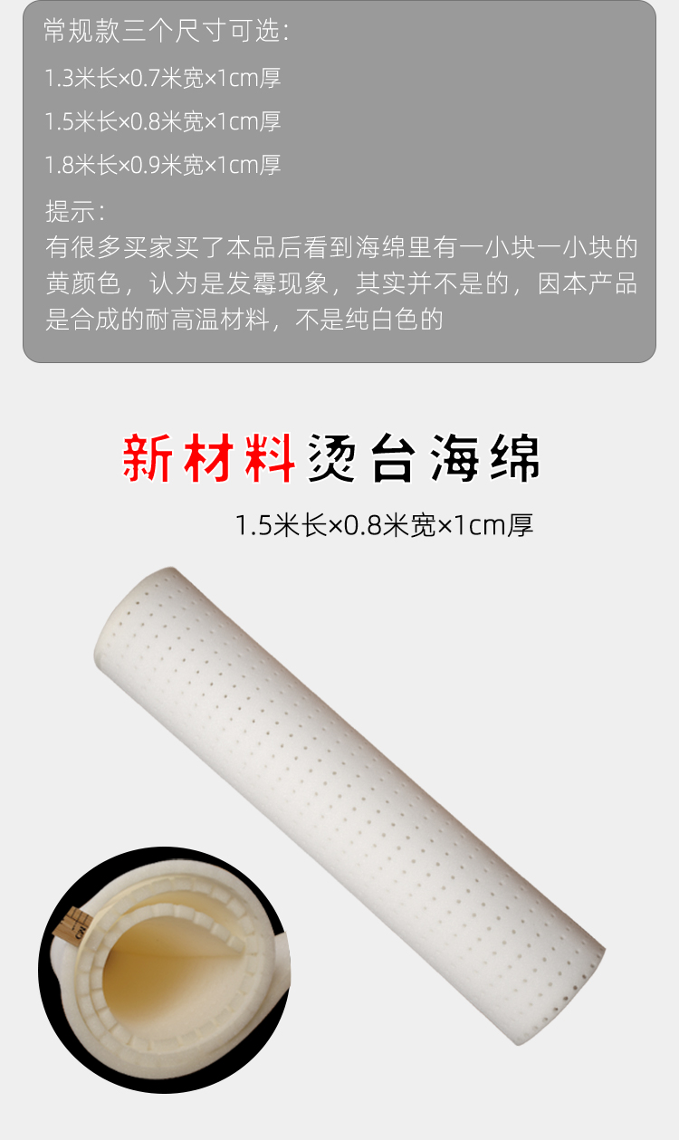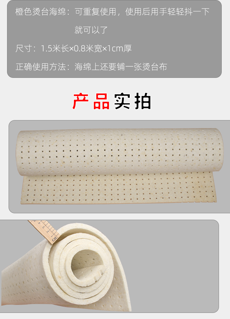 商品名称:优质款烫台海绵 1.5×0.8米有孔海绵垫 服装熨衣板垫海绵垫朋珍