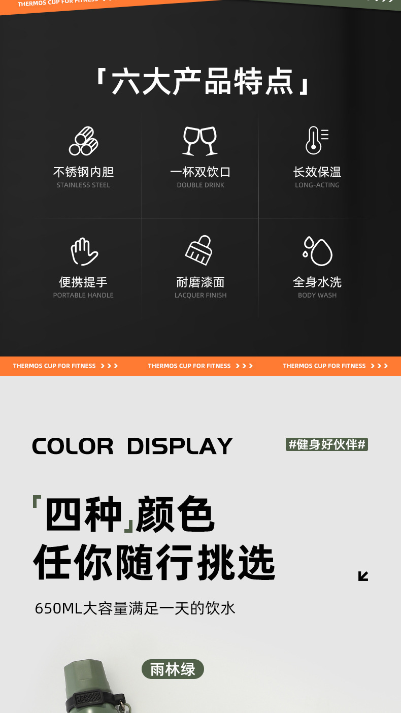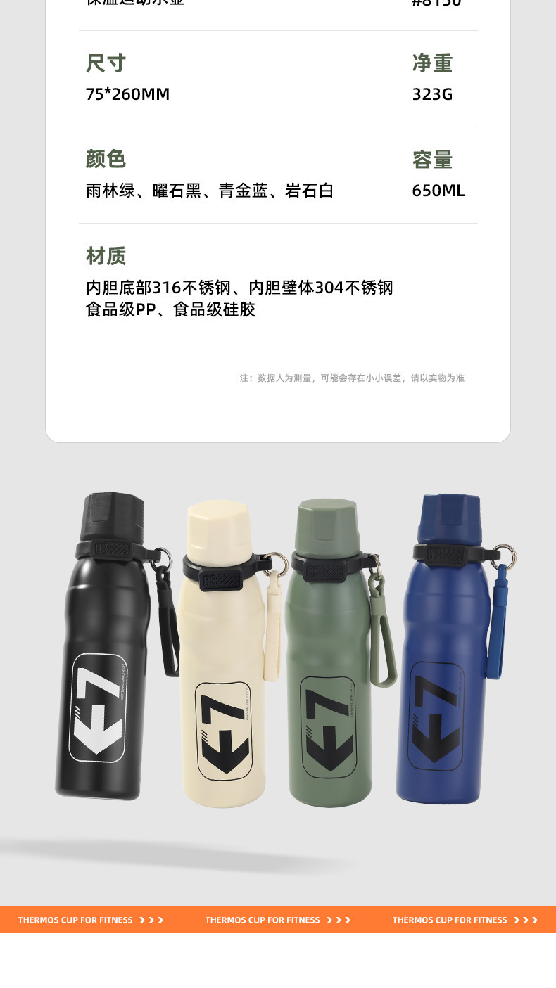 商品名称:户外大容量316不锈钢保温杯真空加厚运动水杯男旅行登山便携水壶