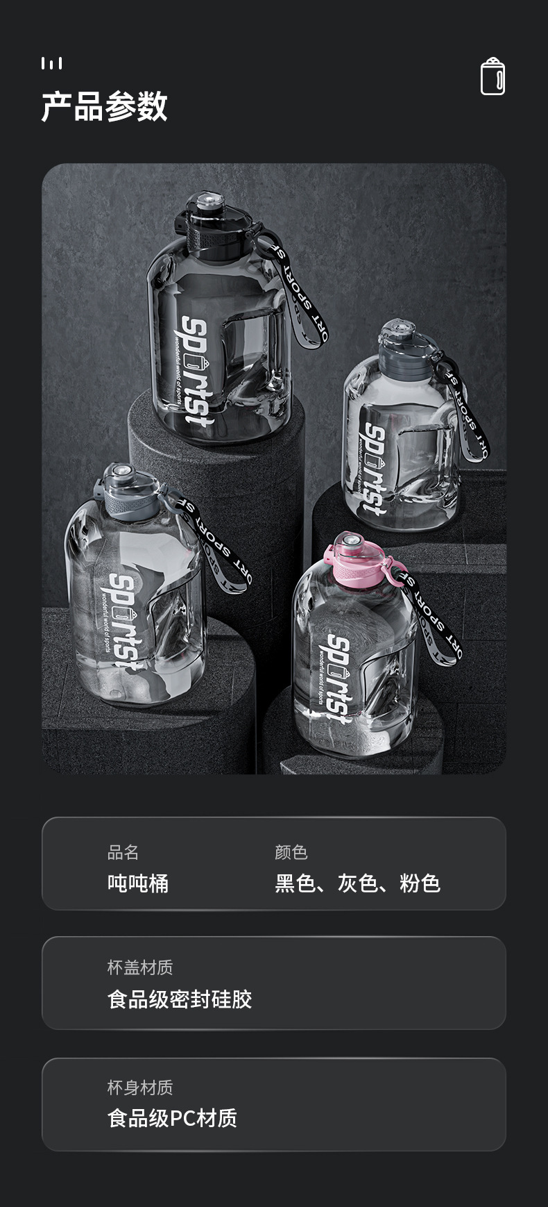 商品名称:大容量水杯男士运动水壶男生健身水桶吨桶吨大肚杯子顿顿桶墩墩杯