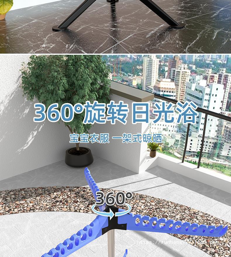 七衣挂【黑蓝】不锈钢-可升降 -免装折叠 风吹不倒