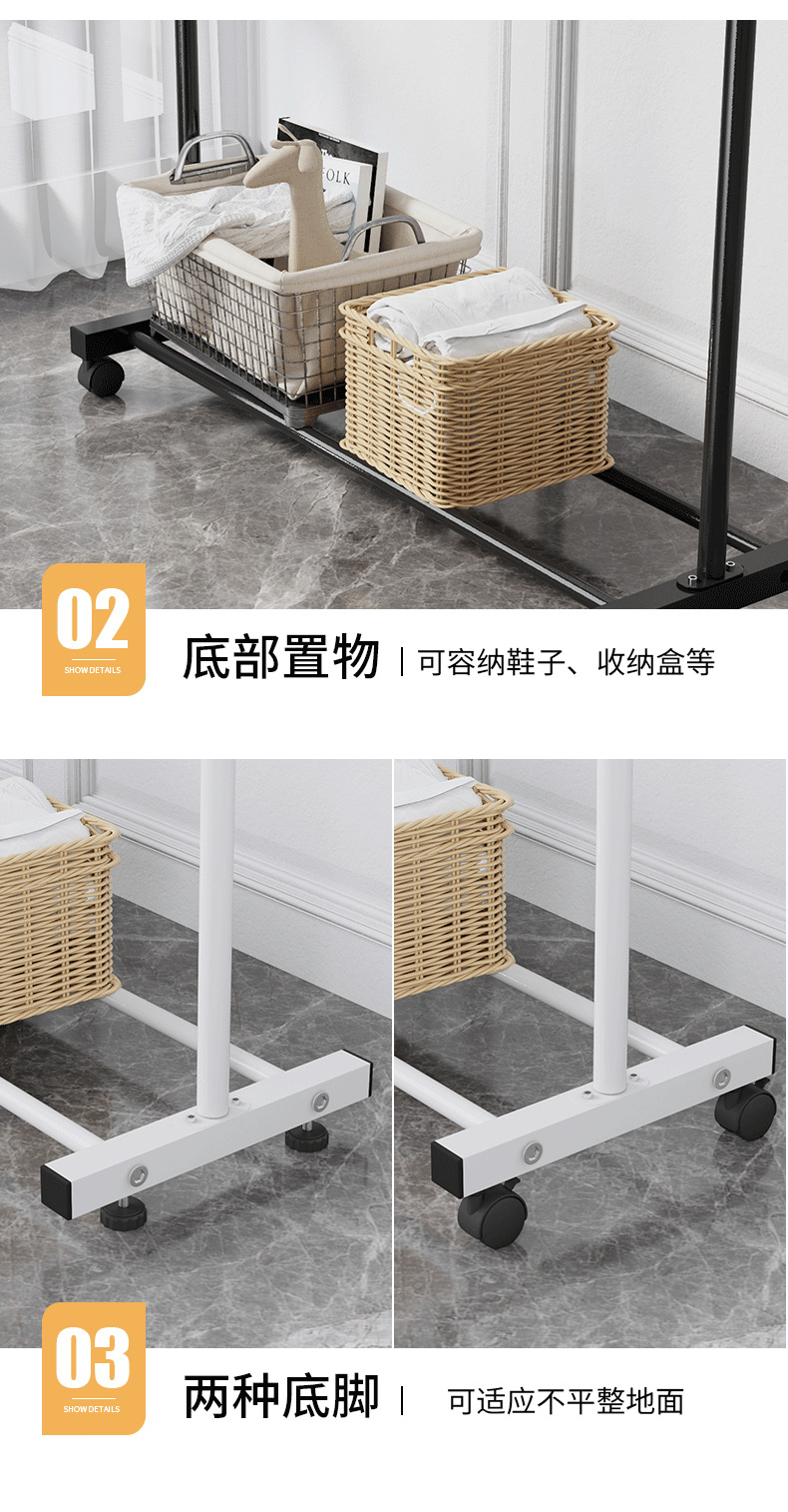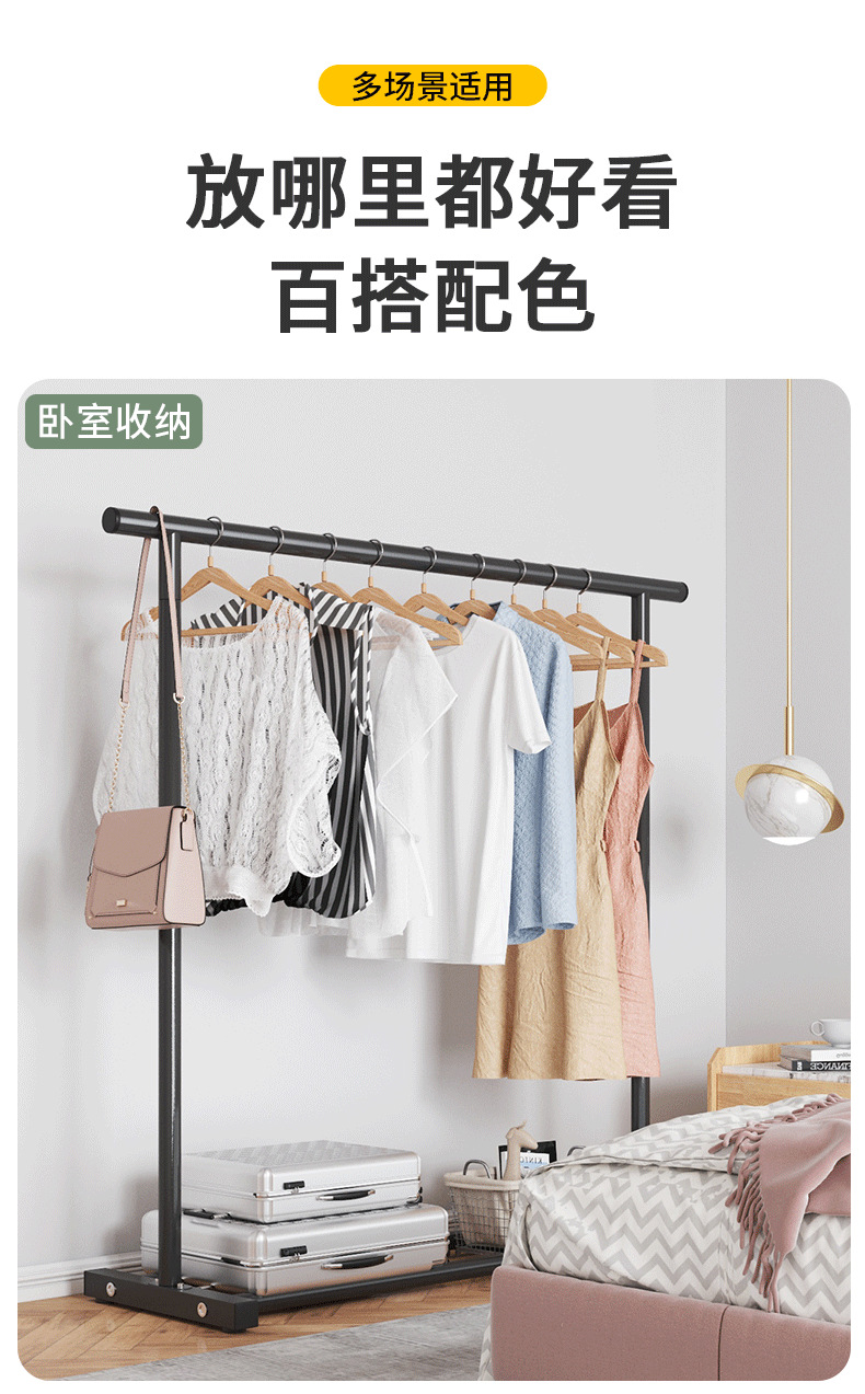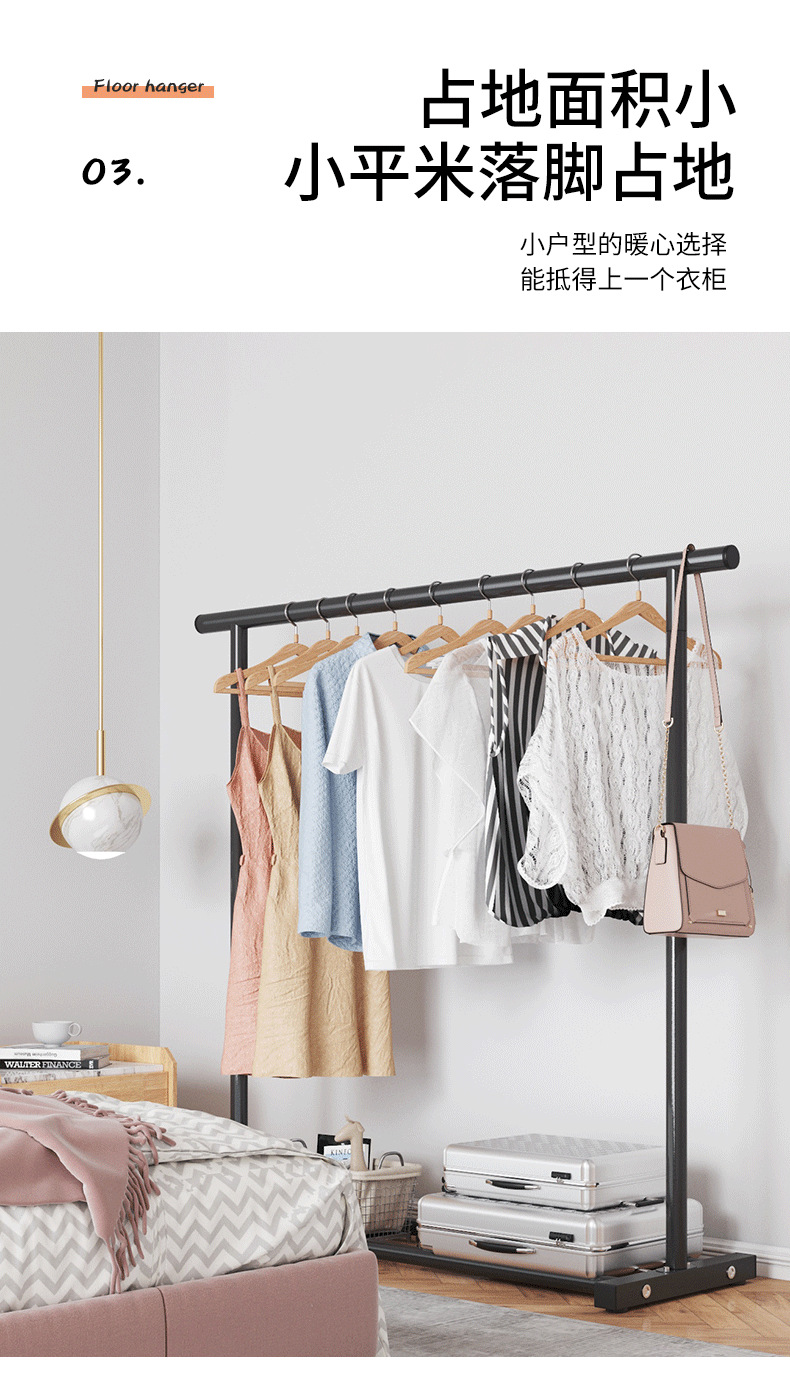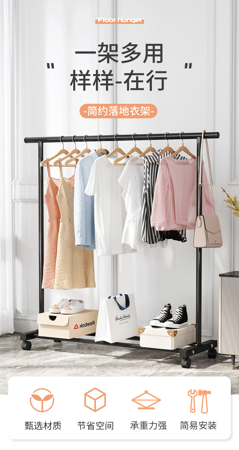 商品名称:晾衣架落地家用卧室衣服架晾衣杆挂衣架展示架阳台晾晒智能移动