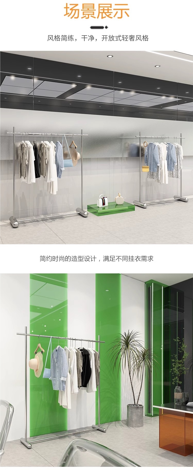 商品名称:服装店不锈钢落地式挂衣架货架展示架陈列道具室内耐用承重智能