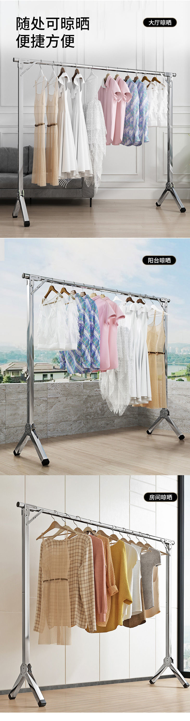 商品名称:晾衣架落地立式家用晾衣杆不锈钢折叠伸缩单杆晒衣架晾衣服挂衣架
