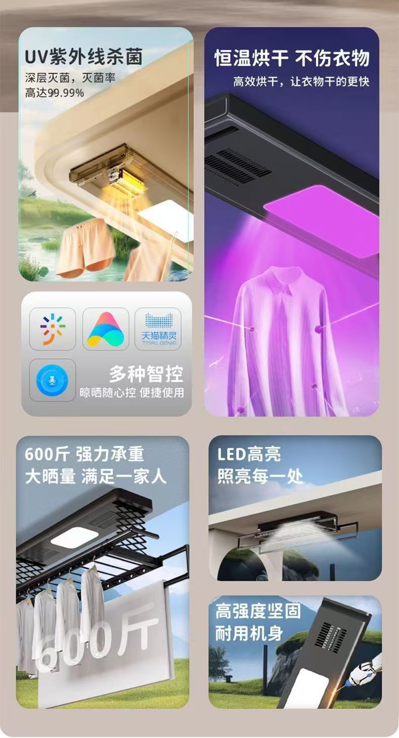 加密双排智能遥控升降+烘干杀菌+天猫精灵
