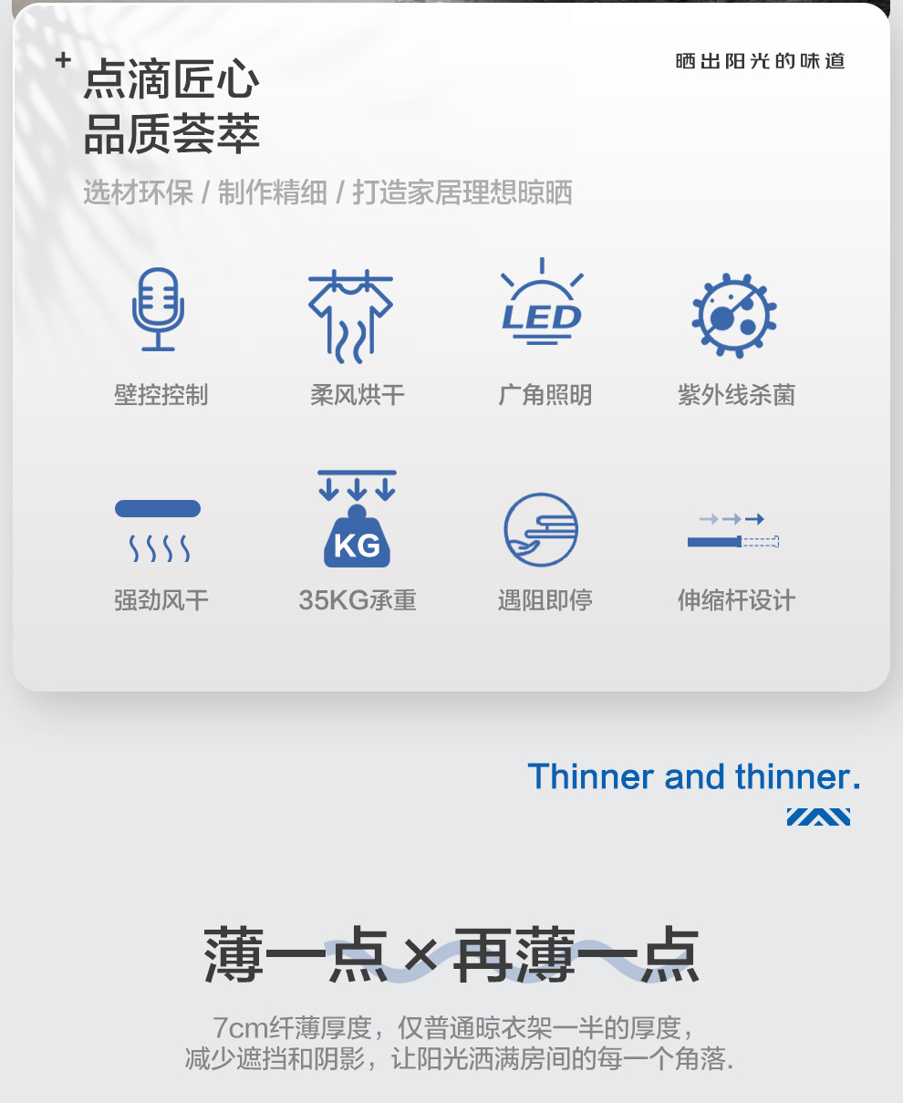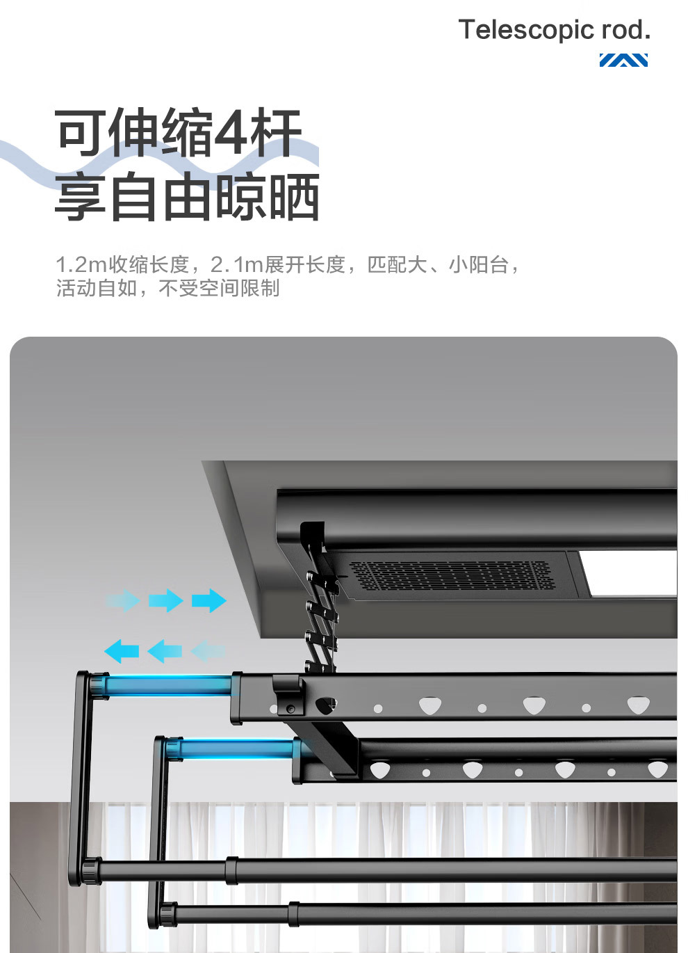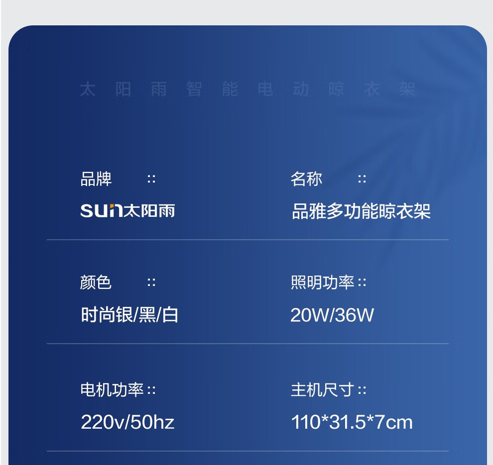 商品名称:太阳雨智能晾衣机超薄隐藏式电动晾衣架自动升降大阳台伸缩晾衣杆