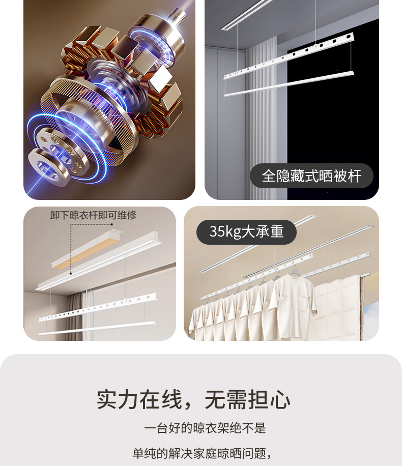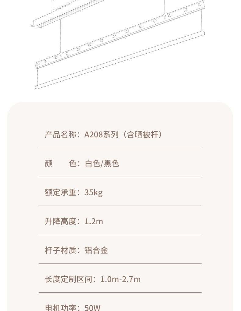 X35:单杆2.0米/100斤承重【隐藏晒被杆+已接入米家APP+照明】