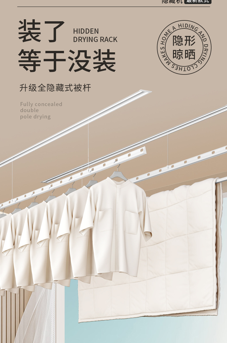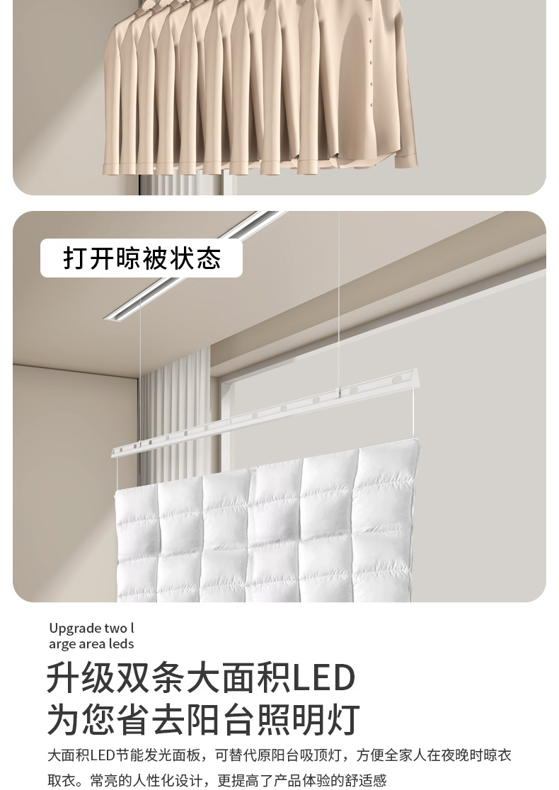 X39:双杆2.0米/200斤承重【隐藏晒被杆+双照明+遥控】