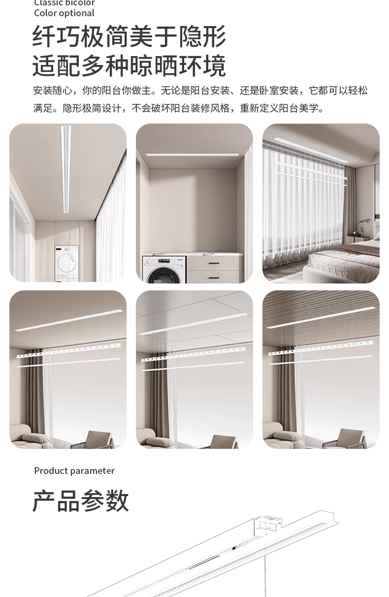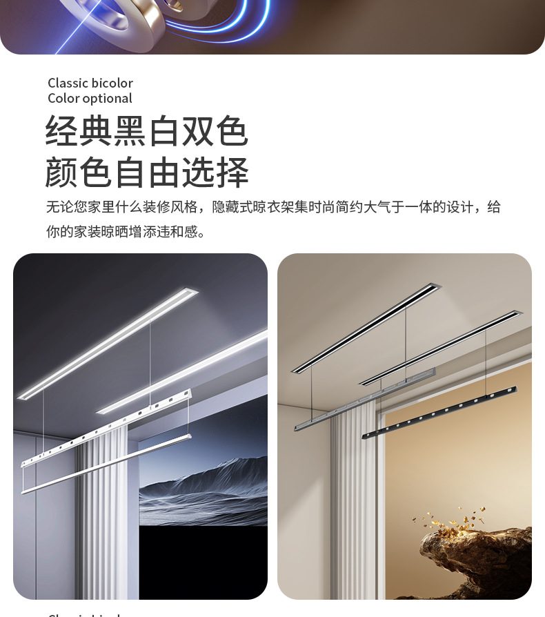 商品名称:隐形电动晾衣架家用暗藏嵌入式阳台遥控声自动智能一体升降晾晒杆