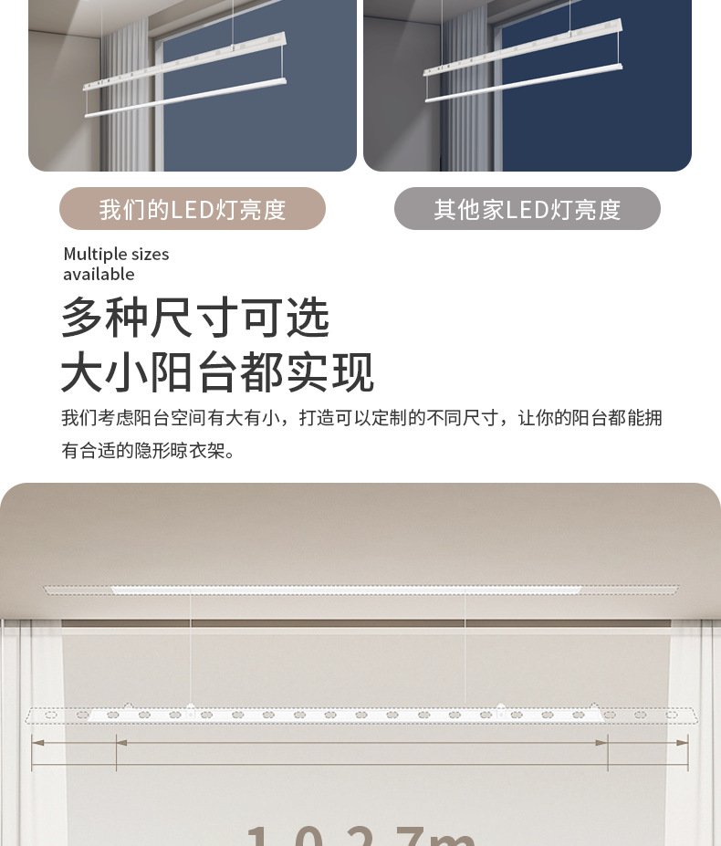 X37:单杆2.7米/100斤承重【隐藏晒被杆+已接入米家APP+照明】