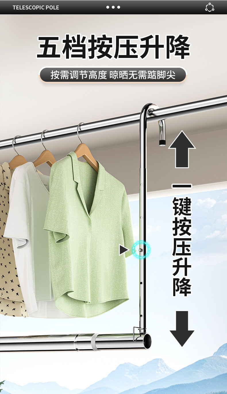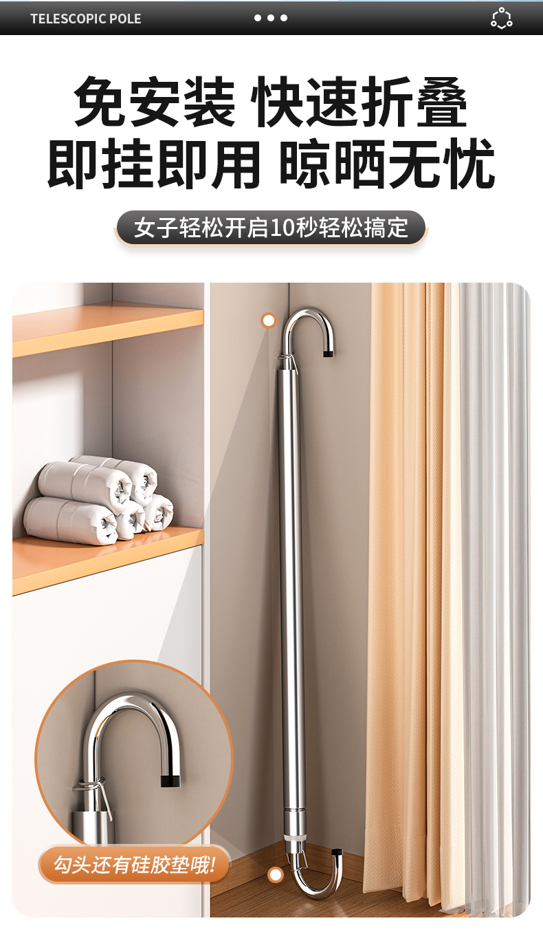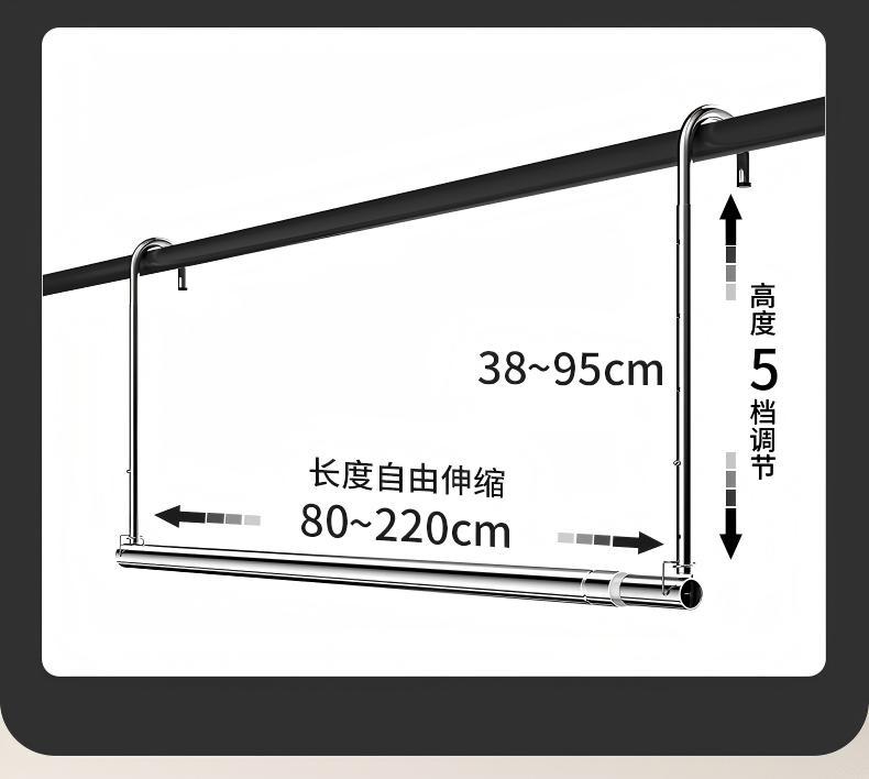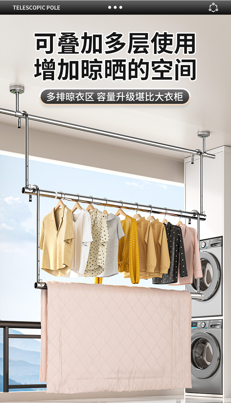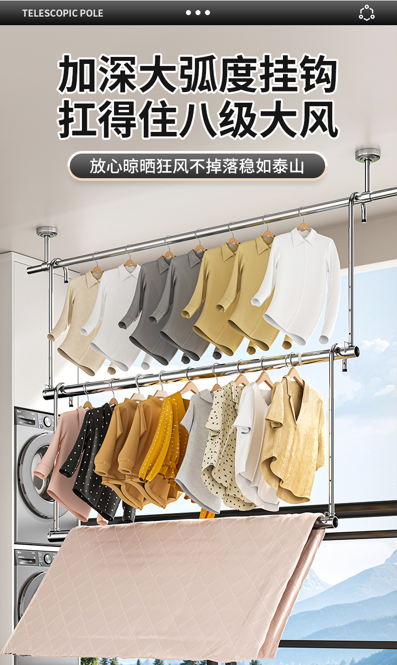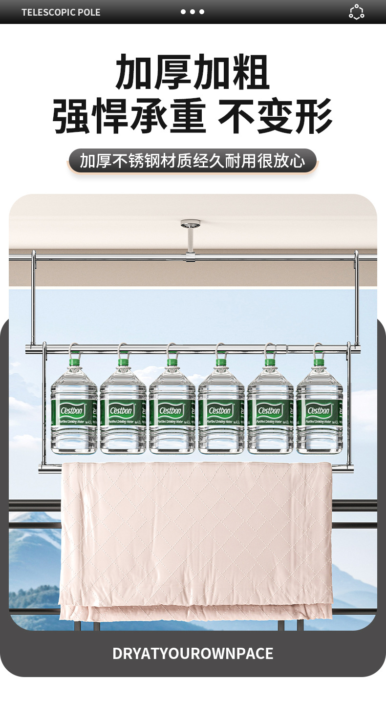 商品名称:晾衣架家用阳台伸缩晾衣杆升降晾衣架吊挂免打孔不锈钢晒被子神器