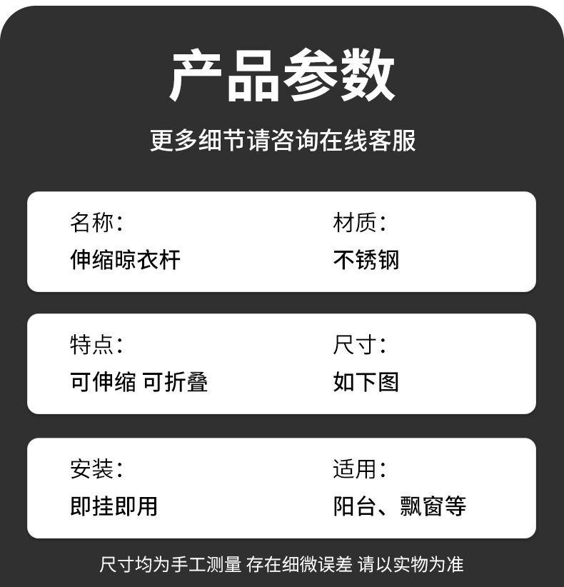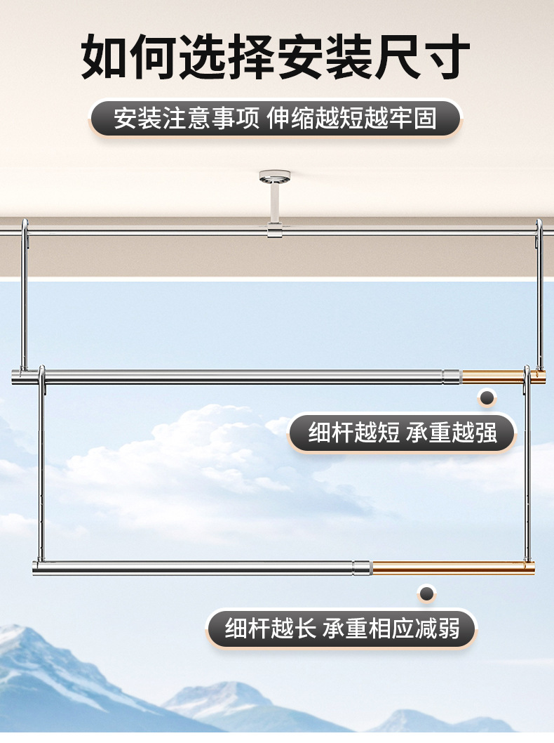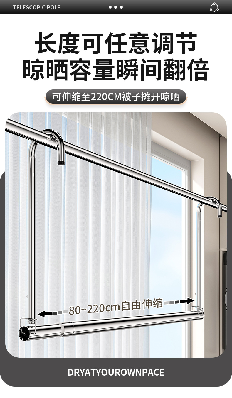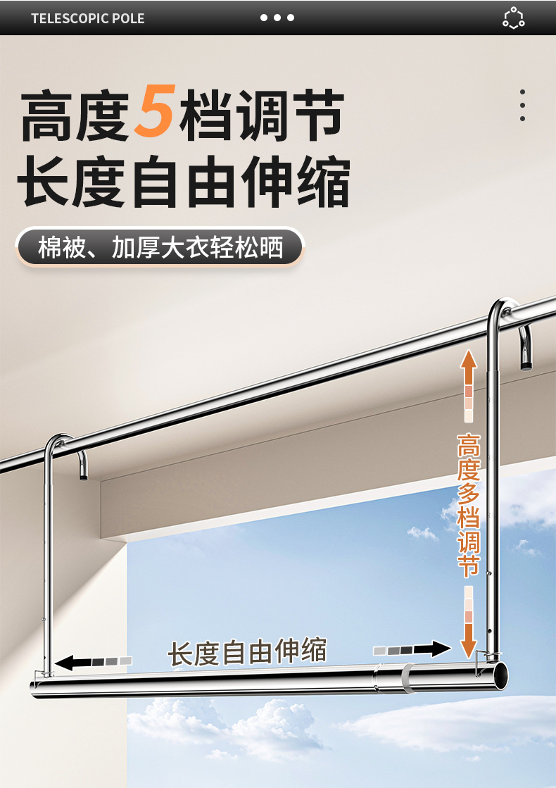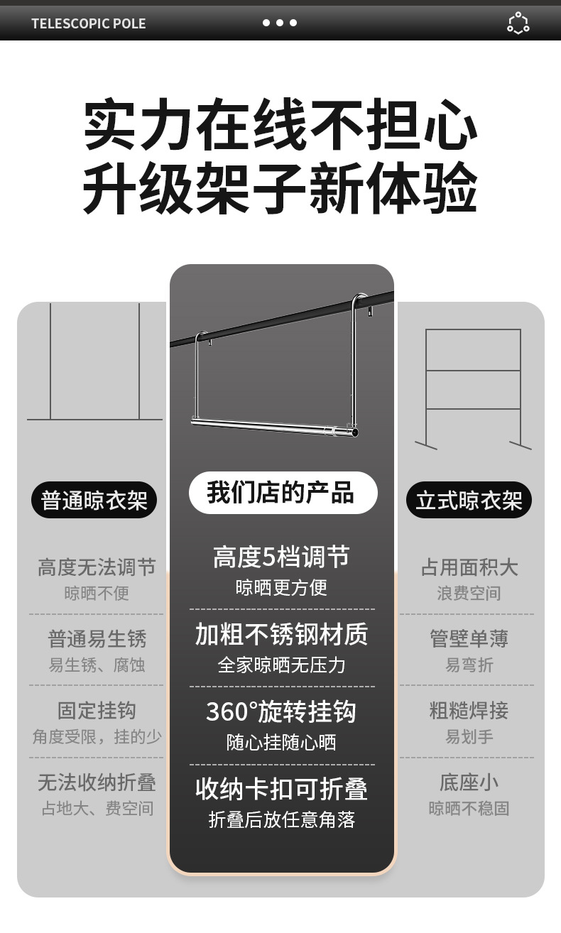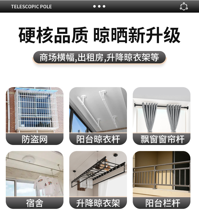 商品名称:晾衣架家用阳台伸缩晾衣杆升降晾衣架吊挂免打孔不锈钢晒被子神器