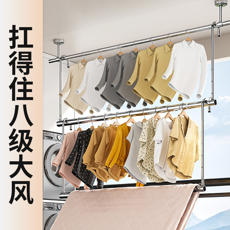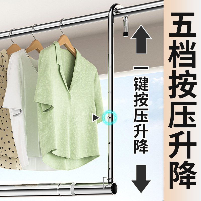晾衣架家用阳台伸缩晾衣杆升降晾衣架吊挂免打孔不锈钢晒被子神器